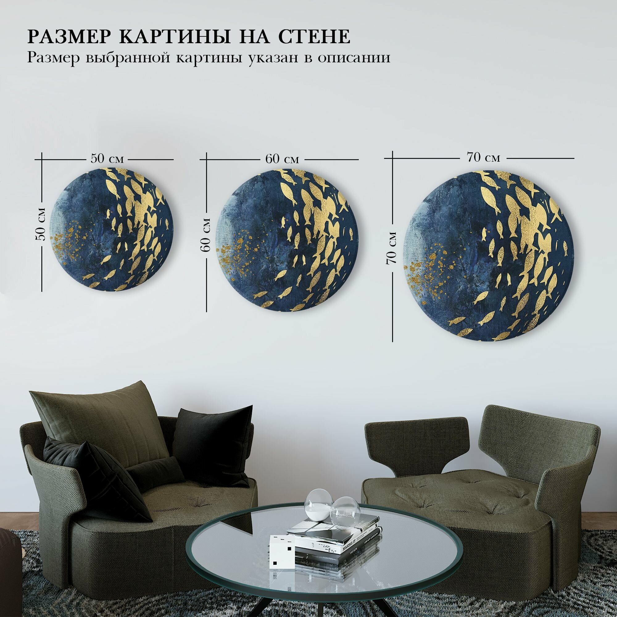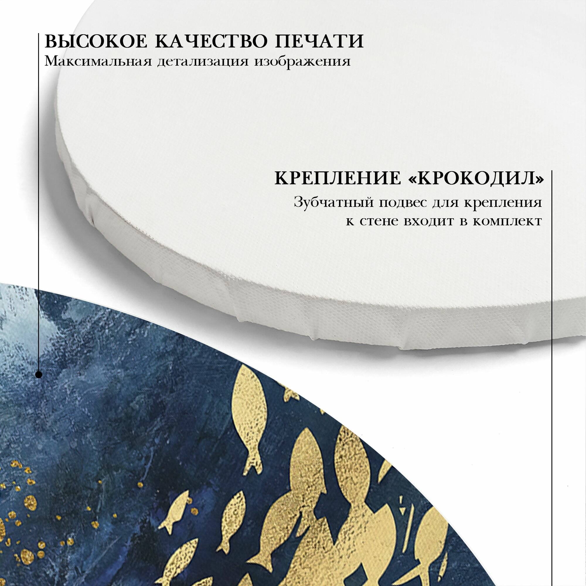 Круглая картина на холсте для интерьера - Золотые рыбы абстракция 50 см интересное: