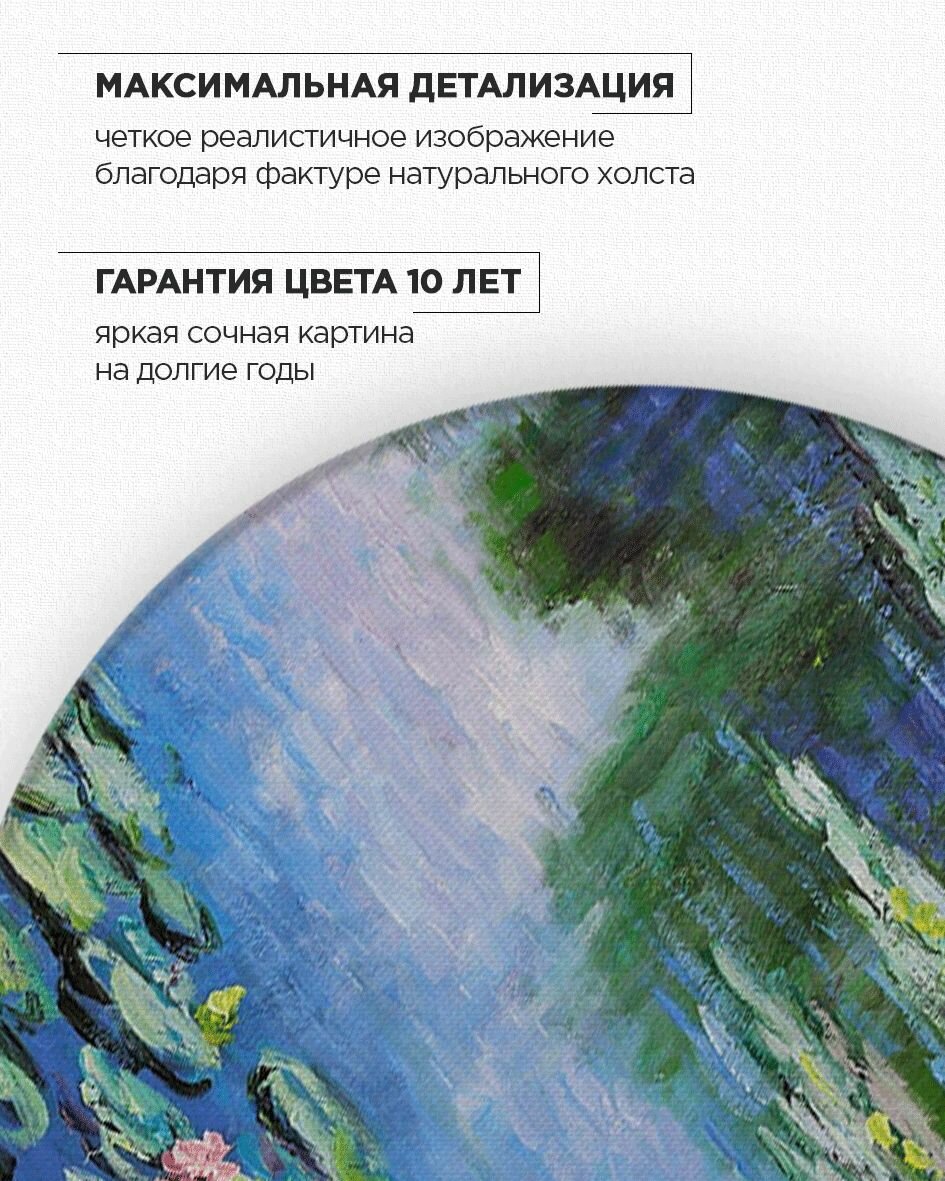Круглая картина на холсте для интерьера Клод Моне Кувшинки Водяные лилии Репродукция60х60 см интересное:
