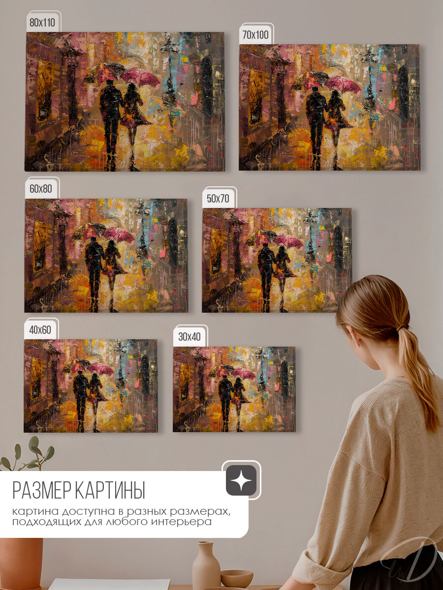 Картина на стену для интерьера пара под дождем 50х70 см интересное: