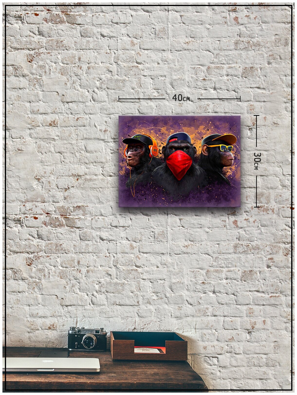 Купить Картина для интерьера на натуральном хлопковом холсте "Три обезьяны дрим-арт", 30*40см, холст на подрамнике, картина в подарок для дома