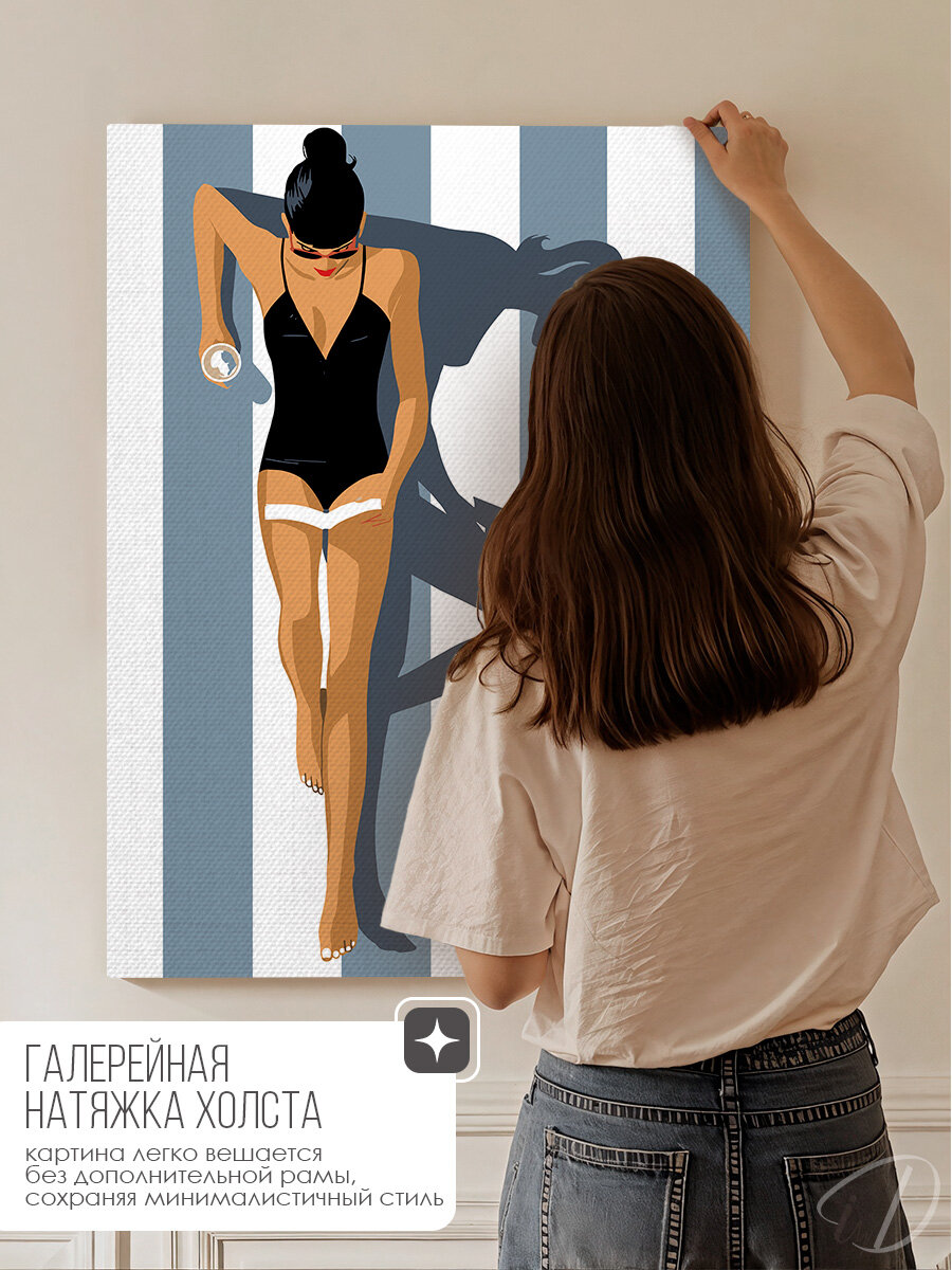 Картина на стену для интерьера девушка полосатый отдых 50х70 см