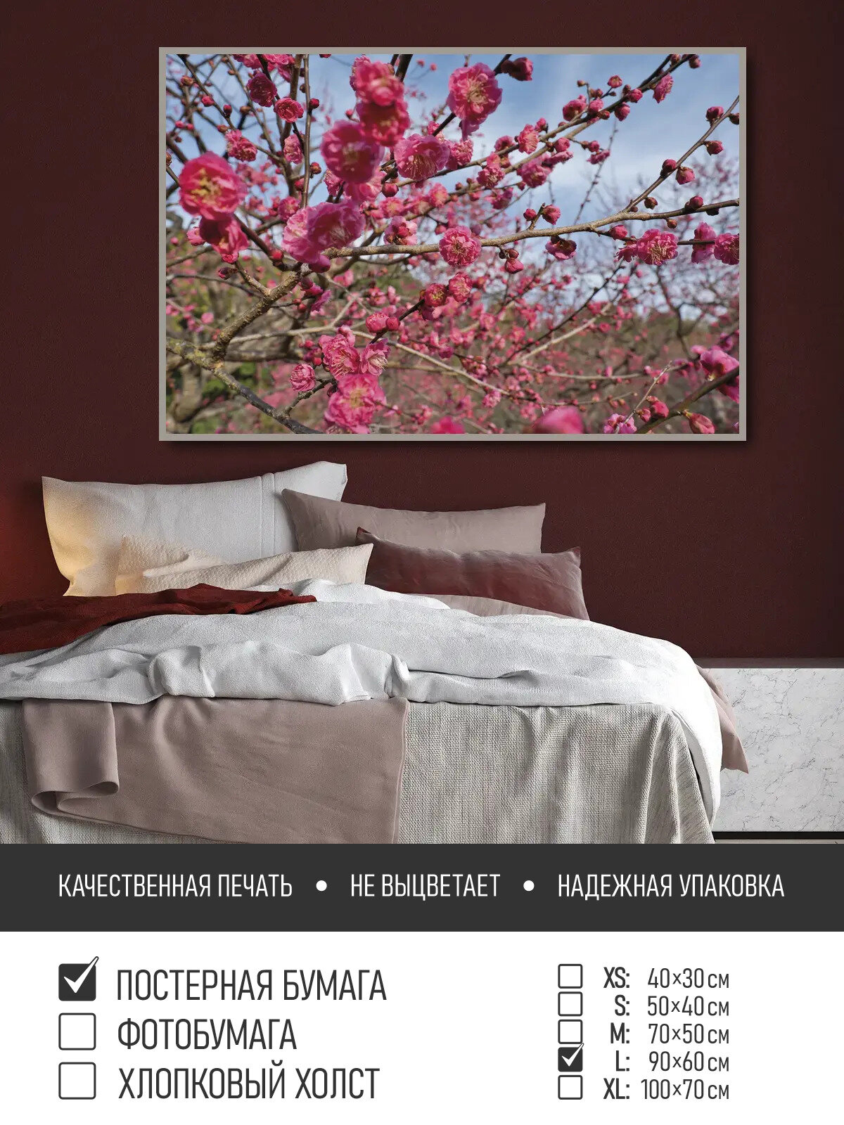 СохранитьПостер на стену Ветки цветущей сливы, 90х60 см ПолиЦентр, цифровая фотопечать интересное: