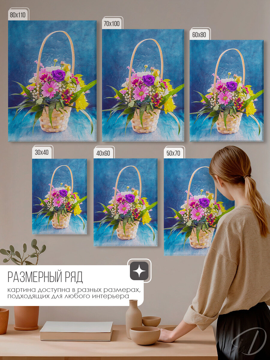 Картина на стену для интерьера яркая корзинка 50х70 см интересное: