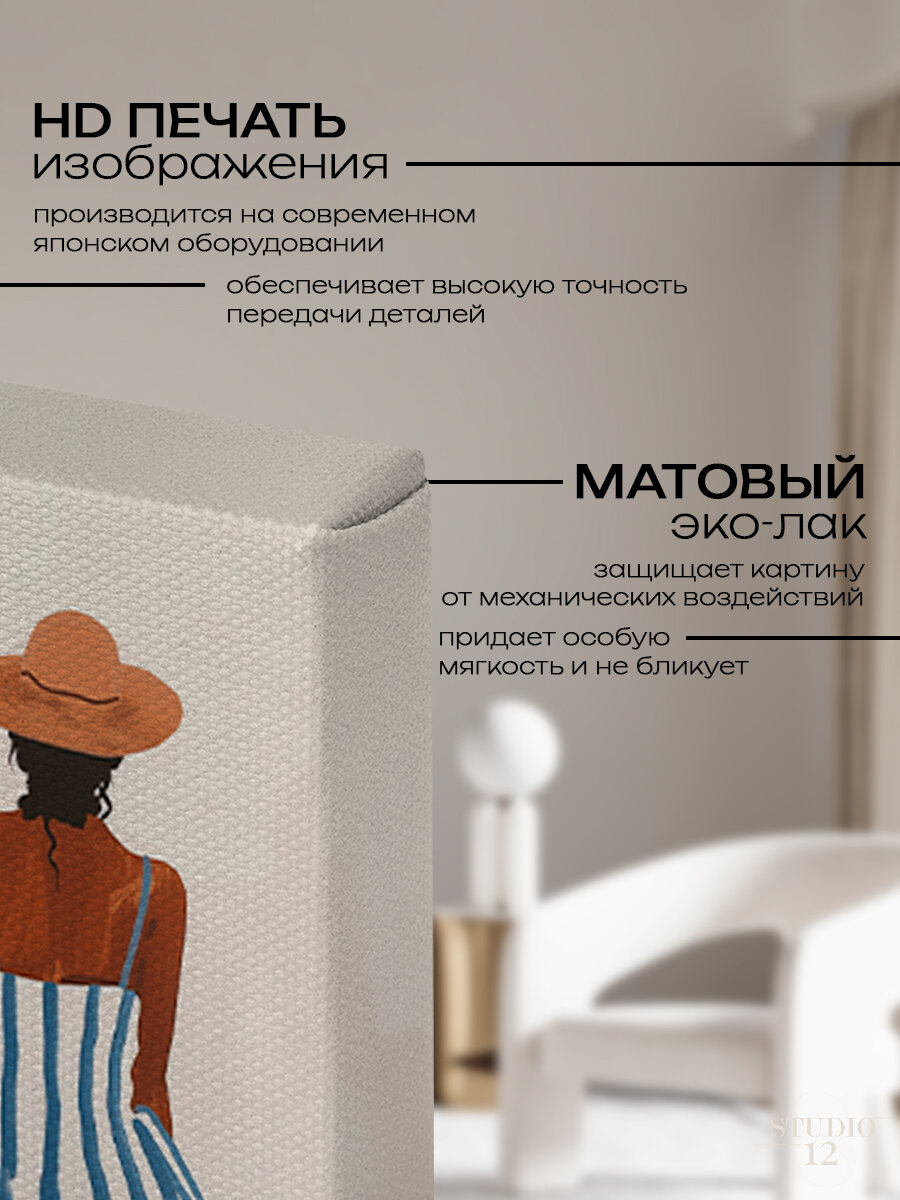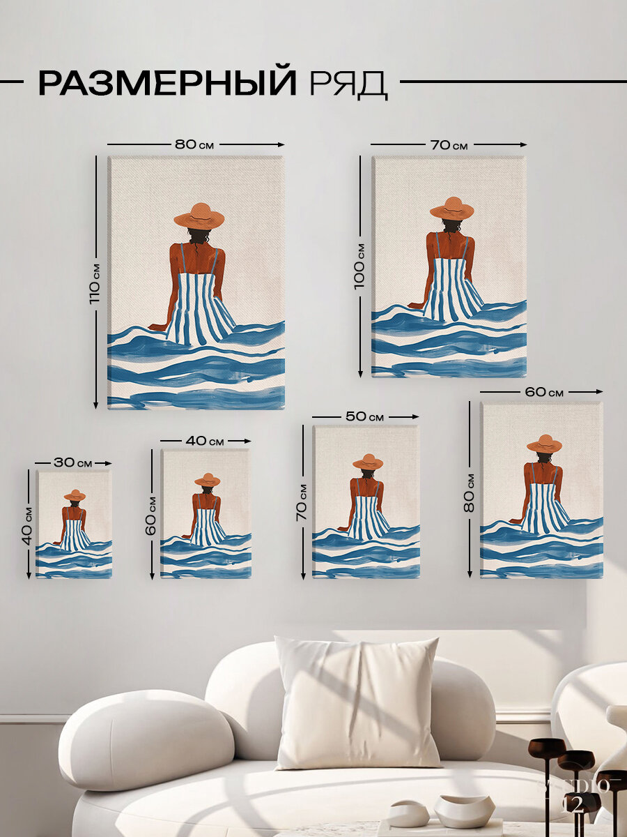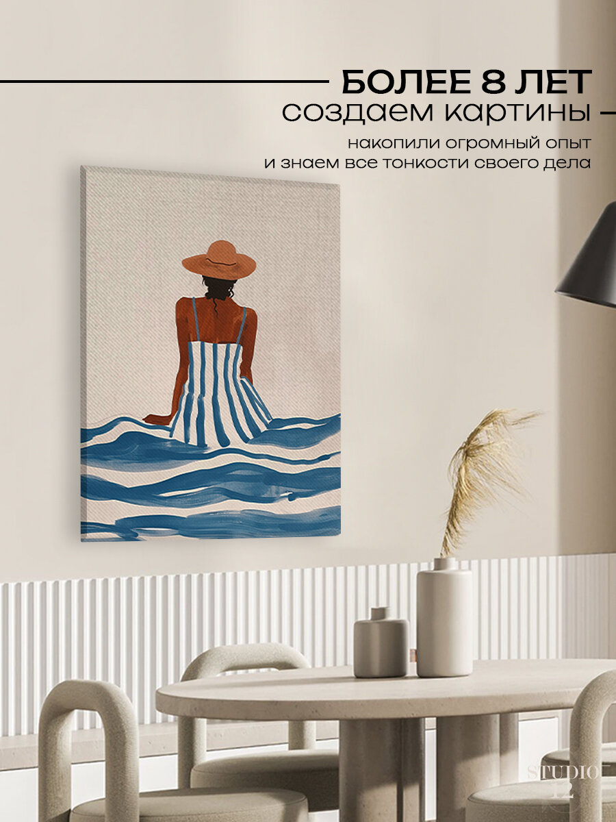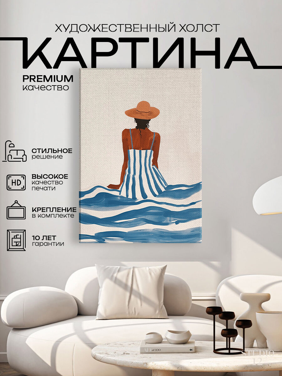 Картина на стену для интерьера Девушка в шляпе море 50х70 см интересное: