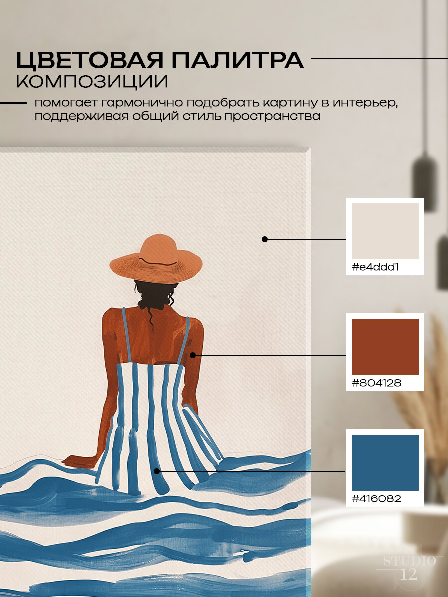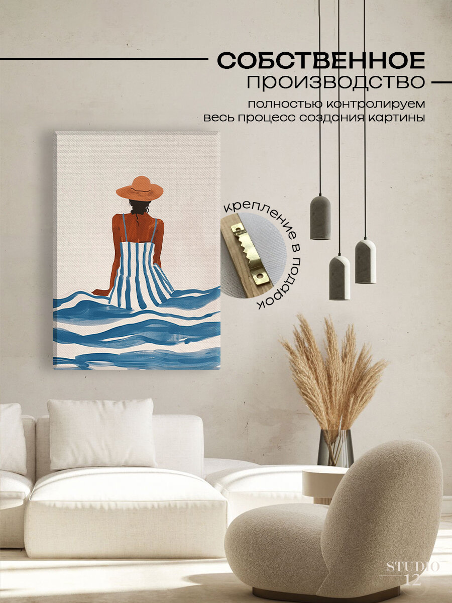 Картина на стену для интерьера Девушка в шляпе море 40х60 см интересное: