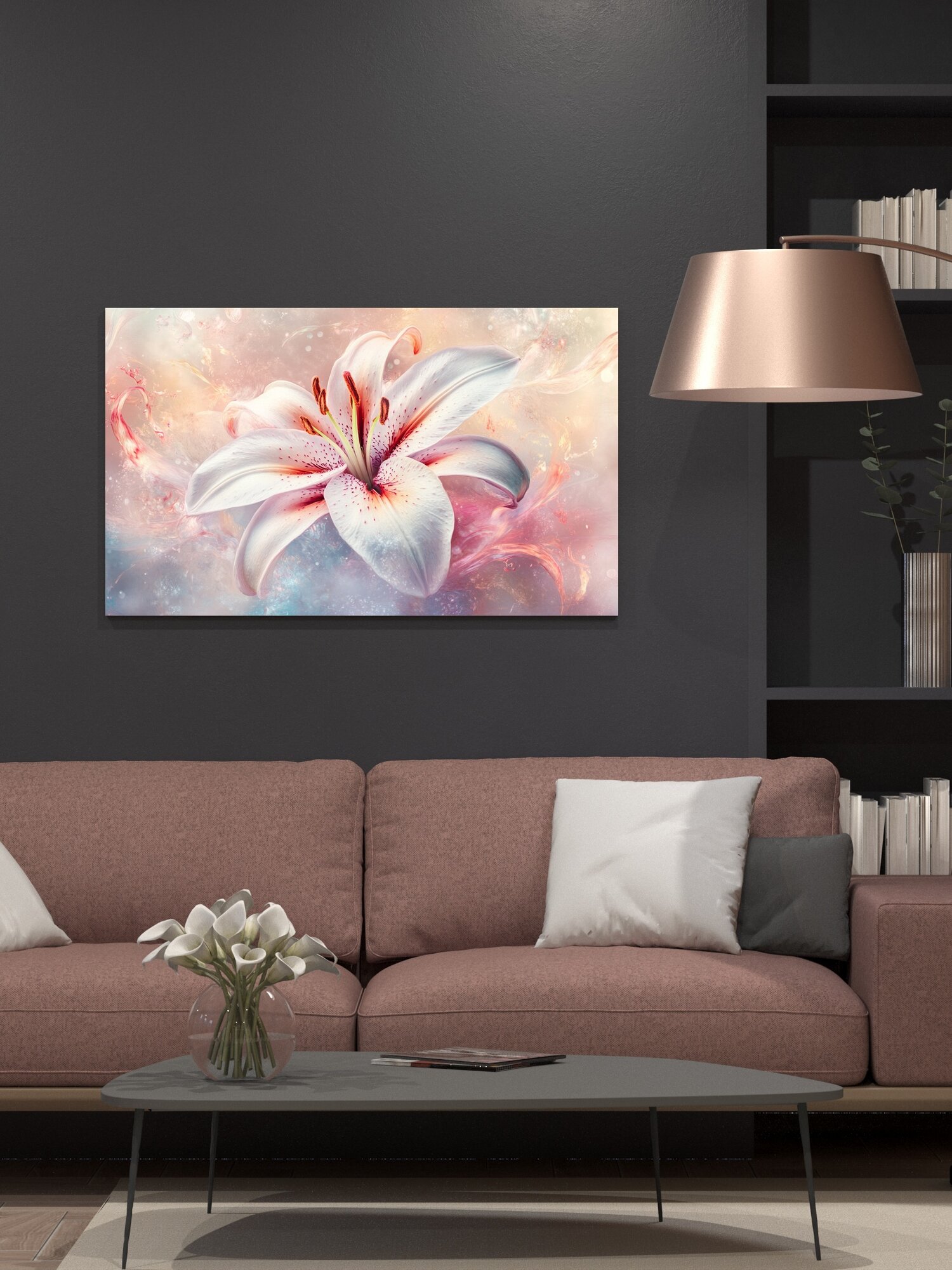 Купить Картина на холсте интерьерная 100х60 см, лилия, романтический стиль, пастельные тона, замысловатые детали, нежность