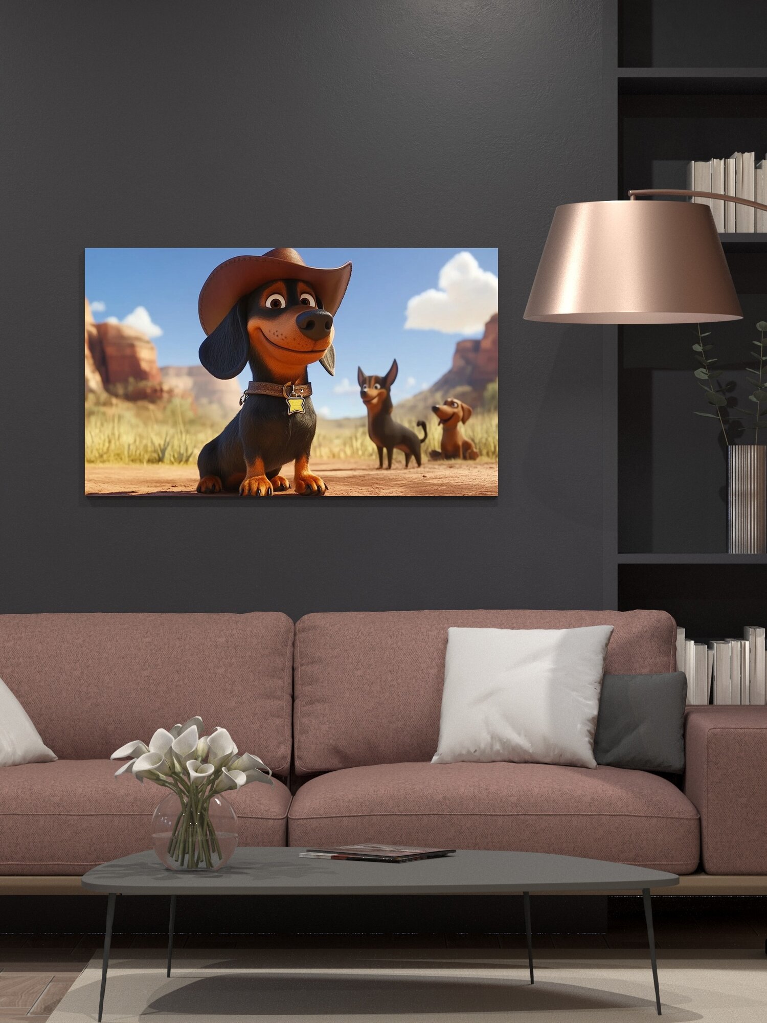 Купить Картина на холсте интерьерная 100х60 см, анимация, Disney, Pixar, такса, ковбойская шляпа, прерия, солнце, приключения