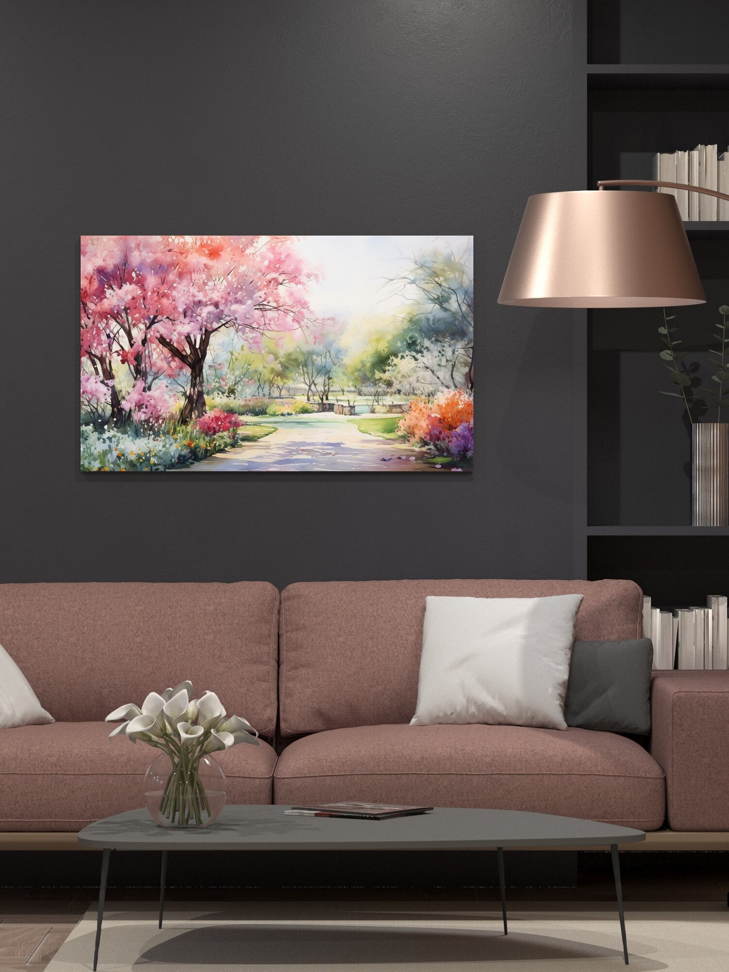 Купить Картина на холсте интерьерная 100х60 см, акварельная картина, художественный стиль Клод, сад, яркие цветы