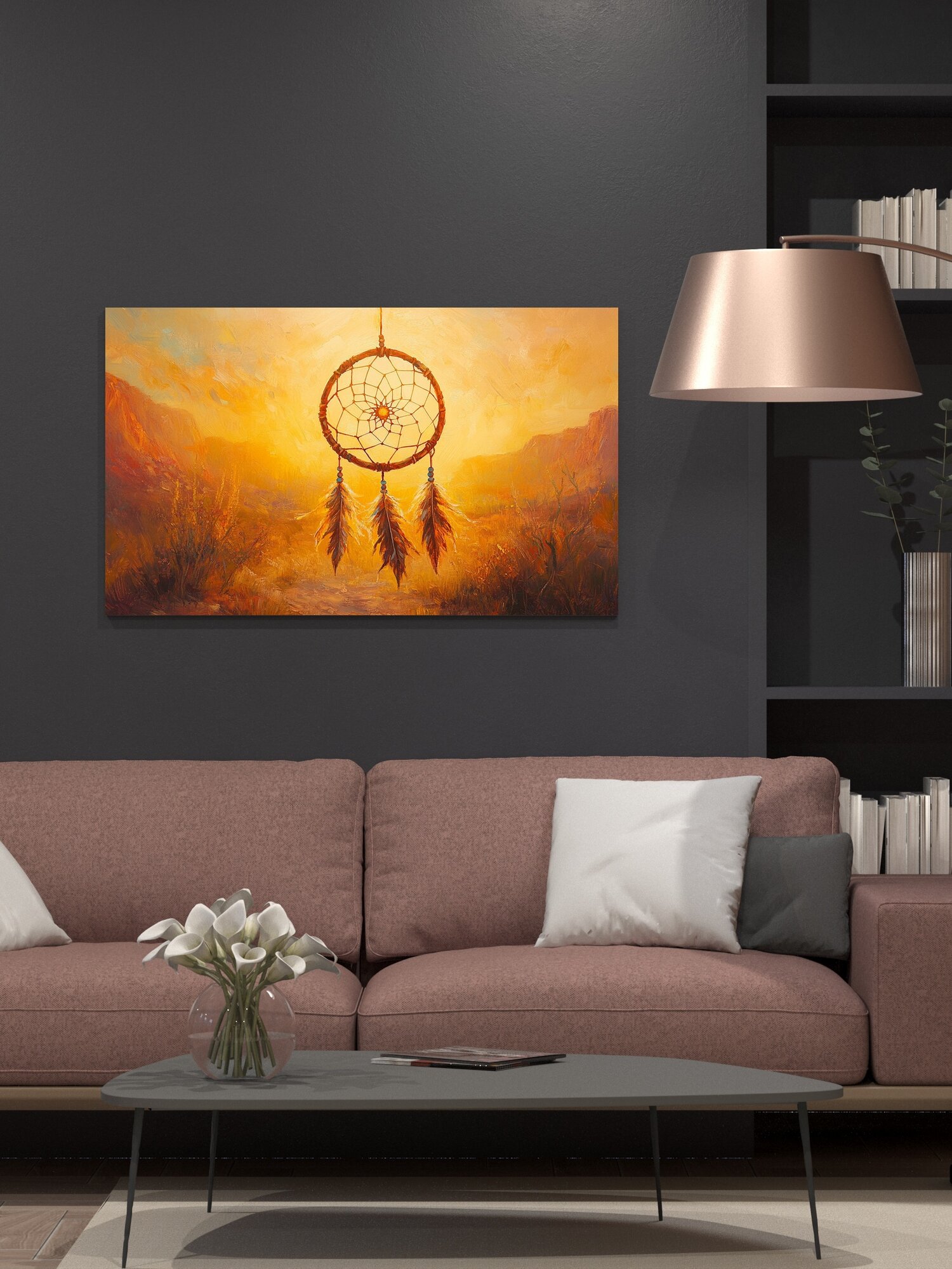 Картина на холсте интерьерная 100х60 см, ловец снов, пустынный пейзаж, масляная картина, яркие краски, солнечный фон интересное: