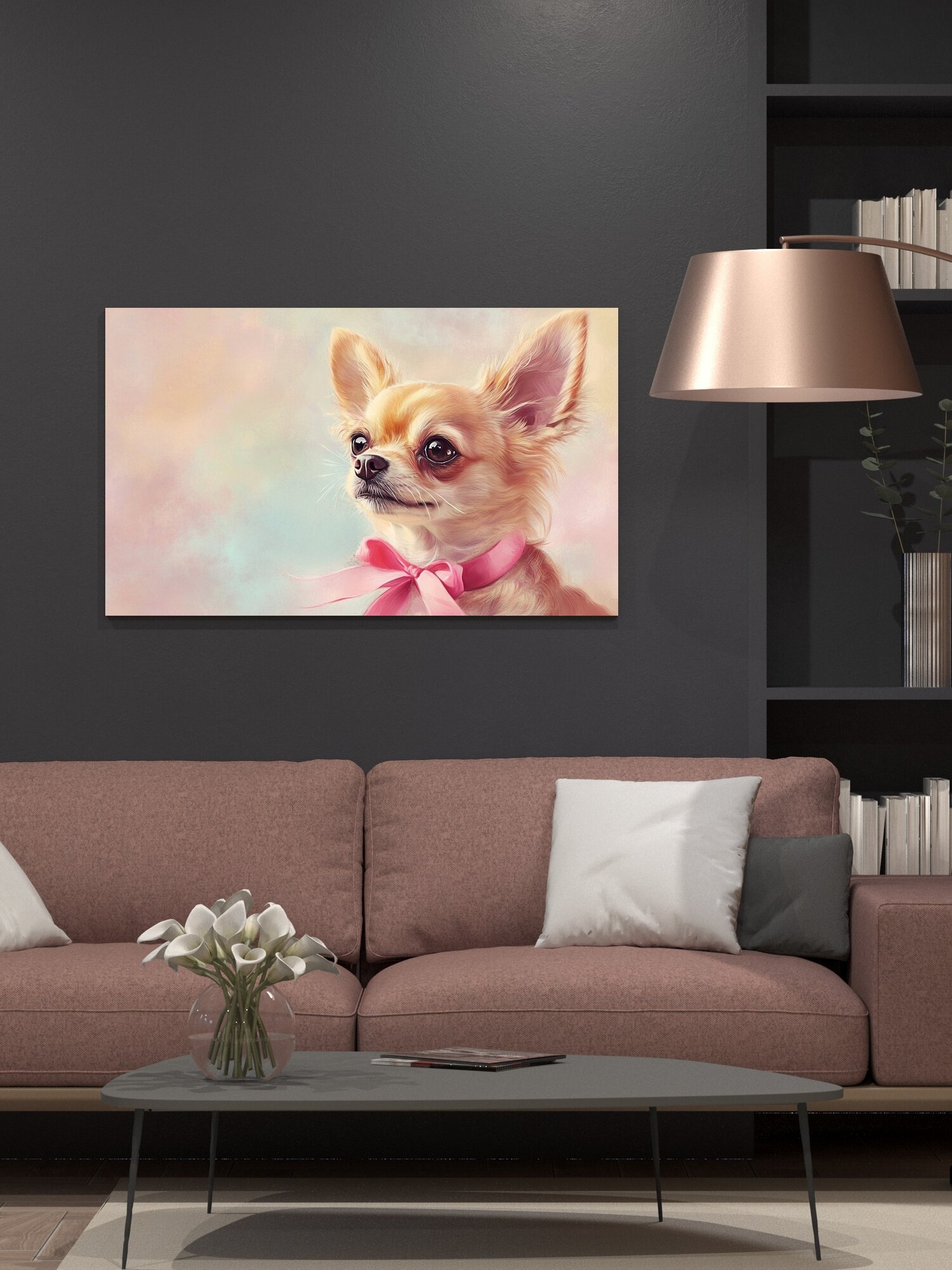 Купить Картина на холсте интерьерная 100х60 см, чихуахуа, пастельный, рисунок, карминовая лента, нежность, привязанность