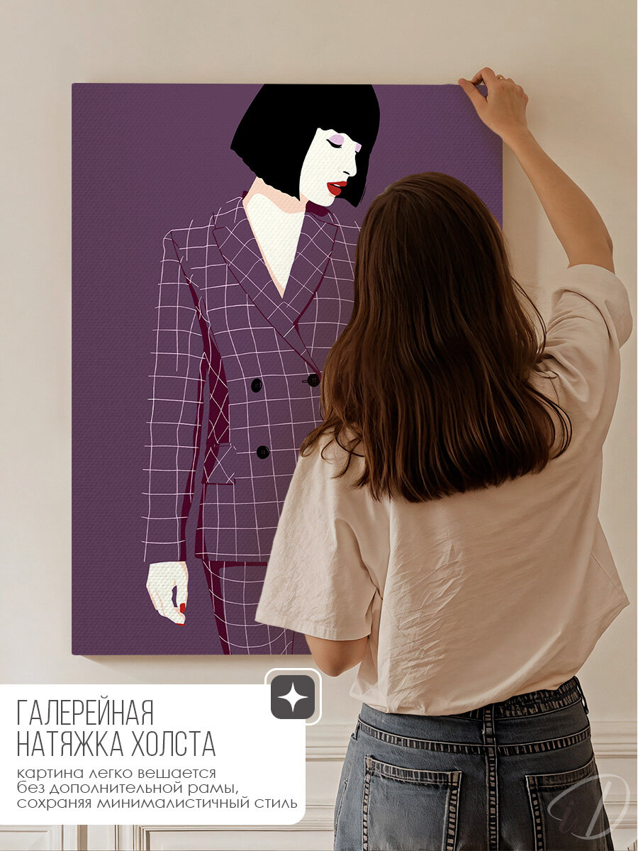 Картина на стену для интерьера девушка с каре лиловый 60х80 см