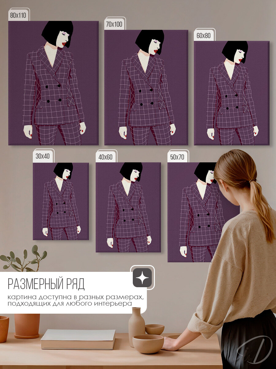 Картина на стену для интерьера девушка с каре лиловый 40х60 см интересное: