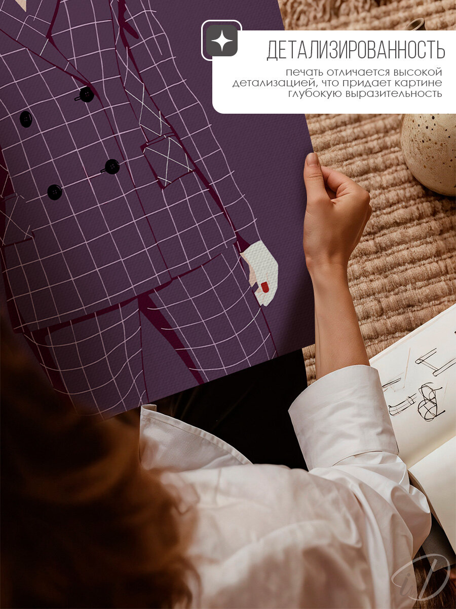 Картина на стену для интерьера девушка с каре лиловый 60х80 см интересное: