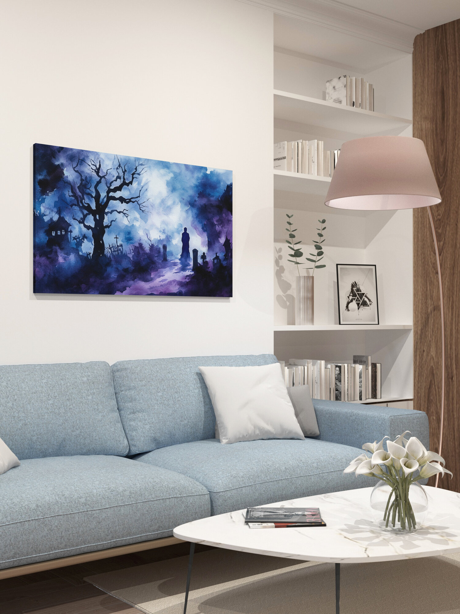 Купить Картина на холсте интерьерная 100х60 см, акварель, иллюстрация, зловещая тень, Хэллоуин, темно-фиолетовый, синий