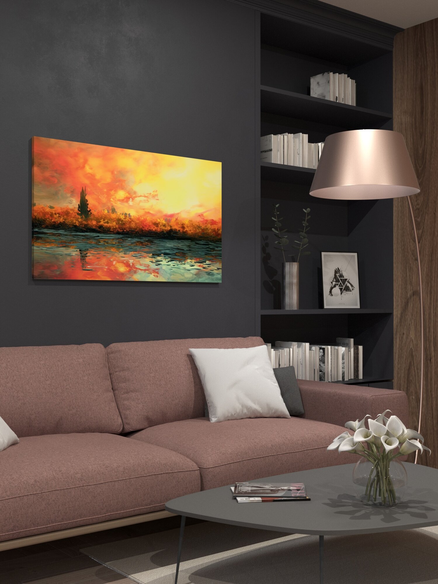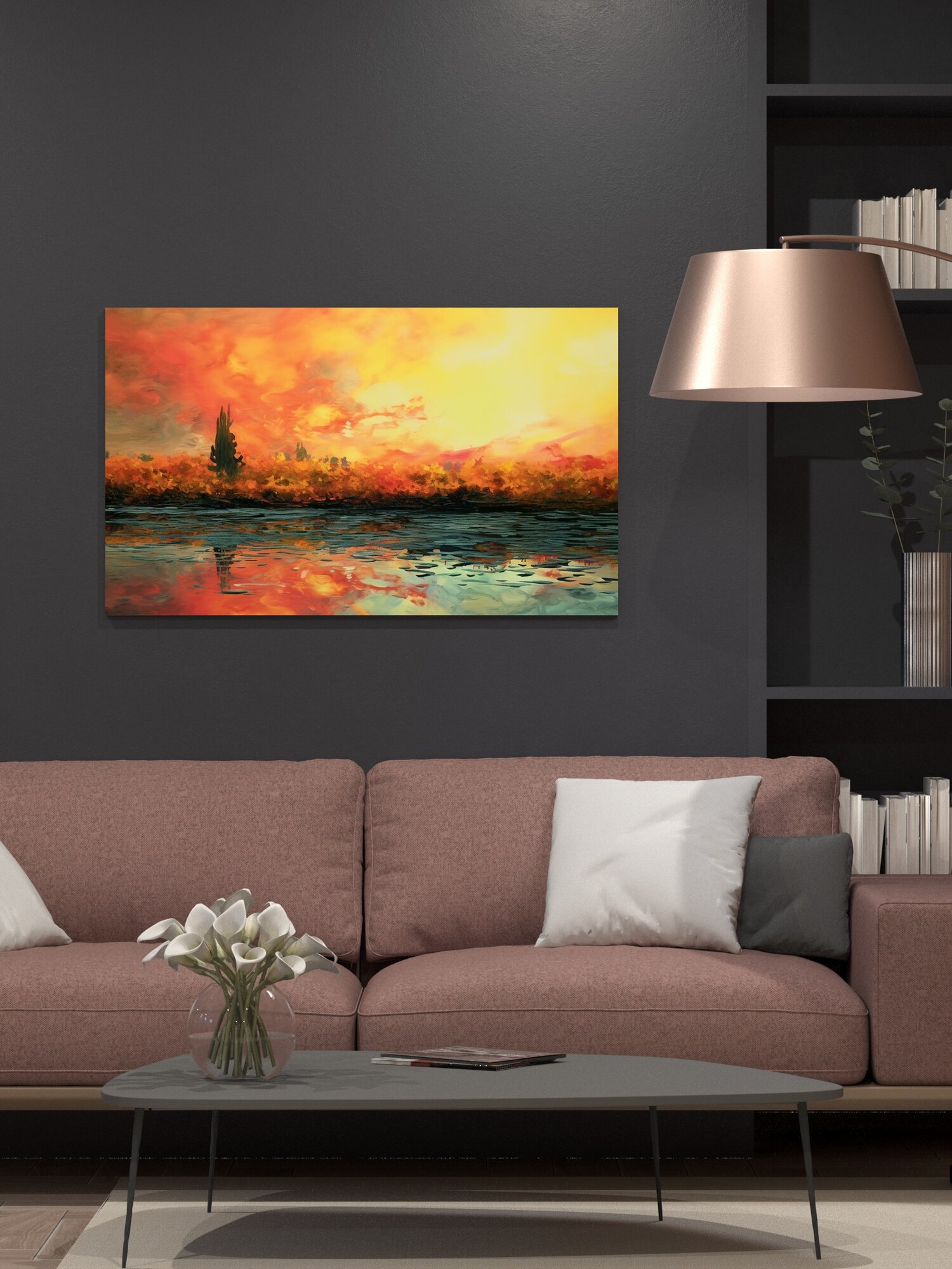 Купить Картина на холсте интерьерная 100х60 см, пейзаж, сельская местность, анимация, изменение цветов, изменение текстур