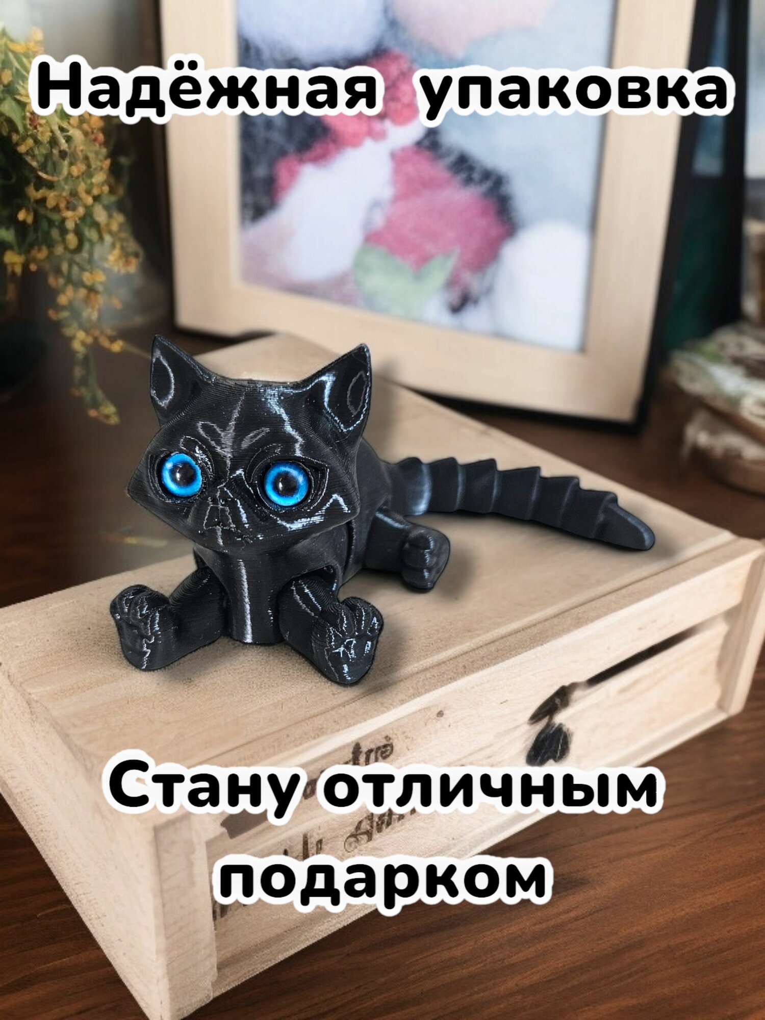 3д фигурка подвижная кошка Мисти, черная, глаза голубые круглые интересное: