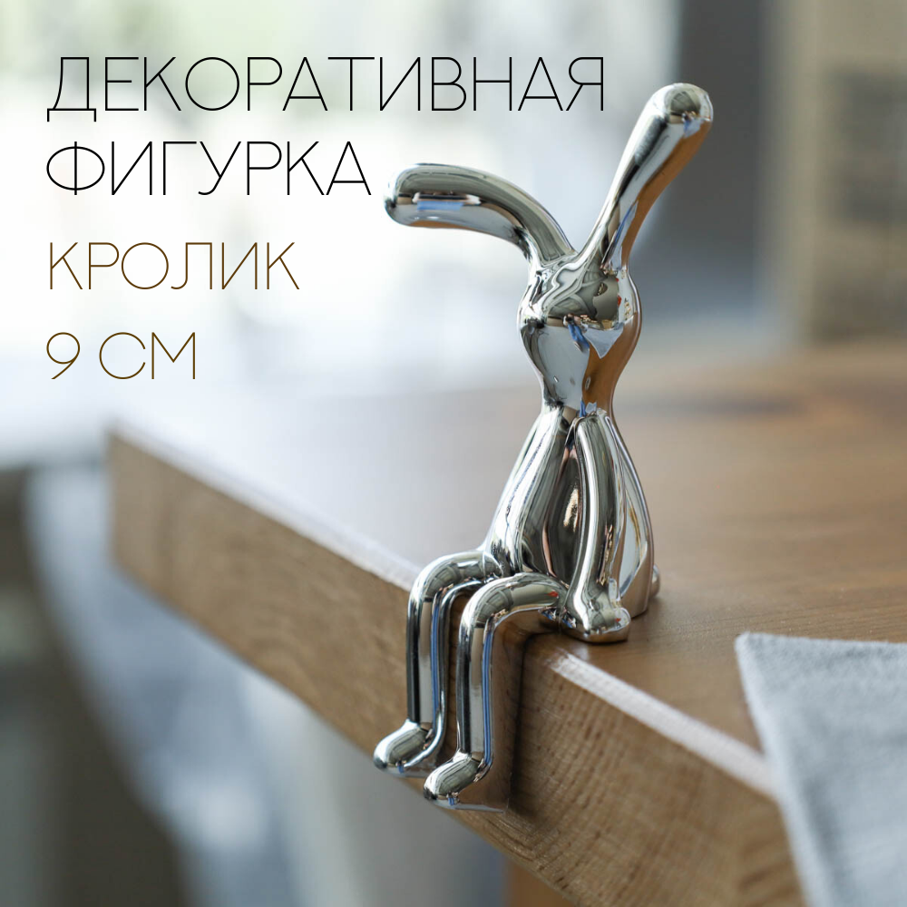 Фигурка декоративная Кролик / серебристая статуэтка 9 см интересное: