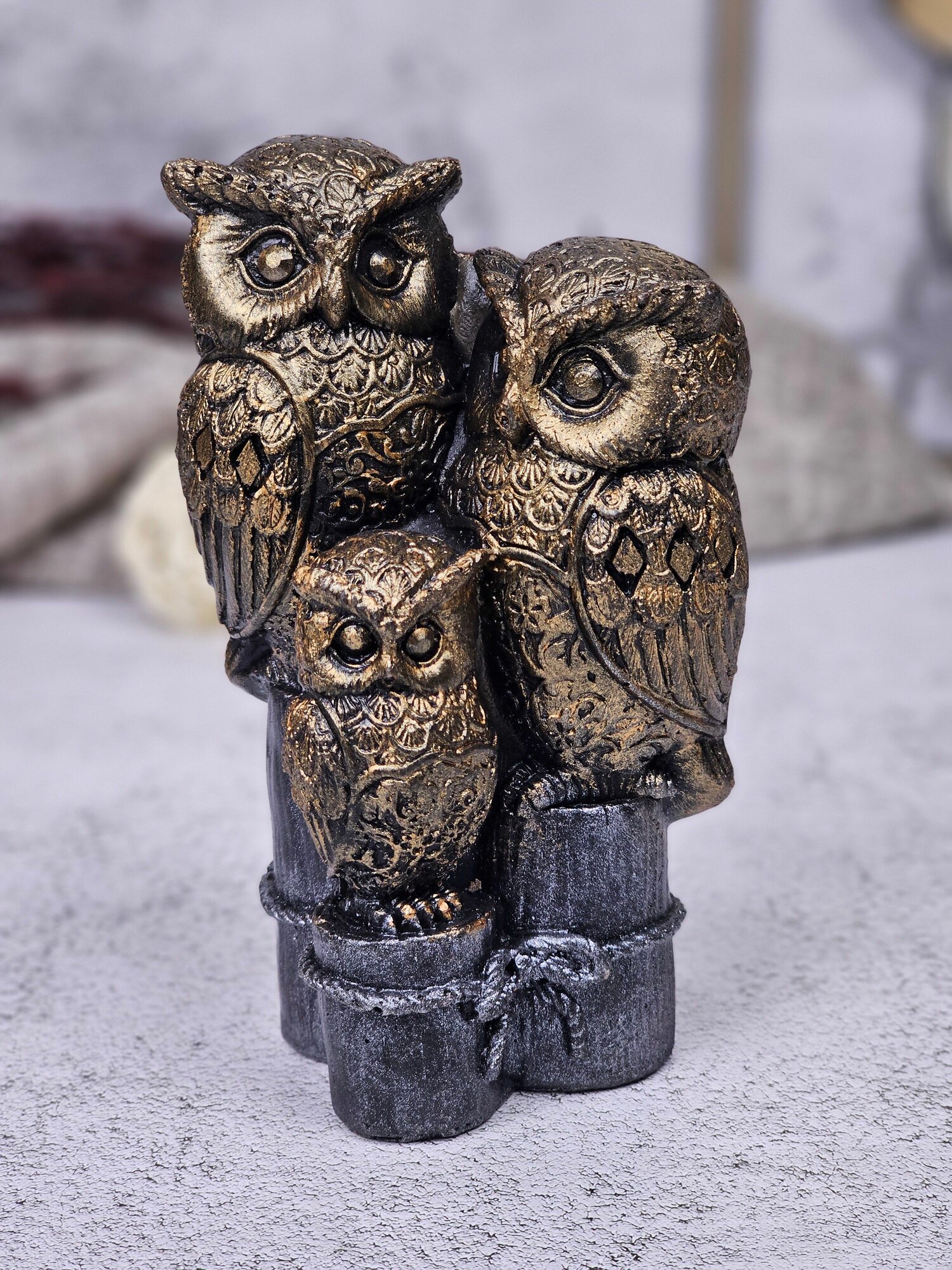 Купить Статуэтка из искусственного камня (полистоуна) Три Совы на Пне бронзово-серебристые