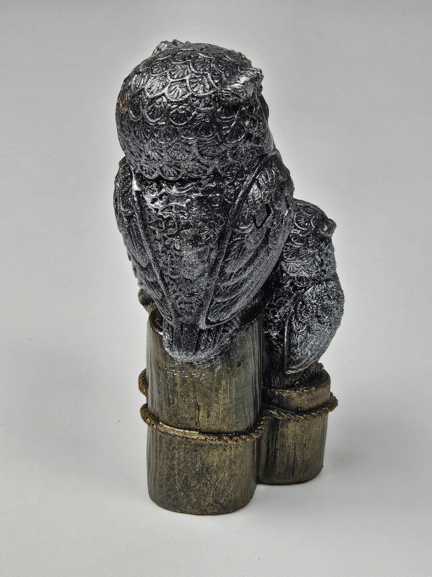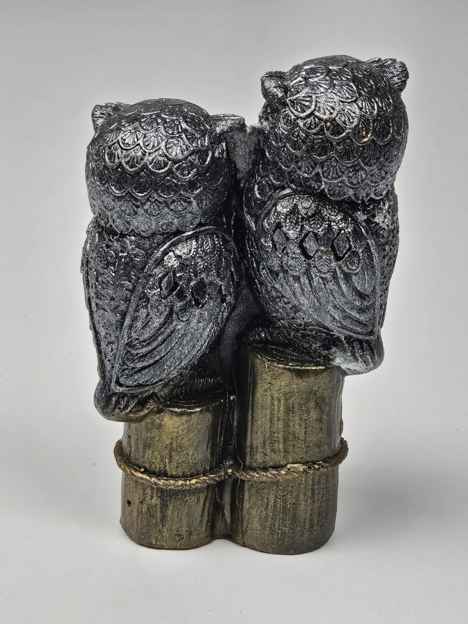 Статуэткаиз искусственного камня (полистоуна) Филин NEW №2 бронзово-серебристый