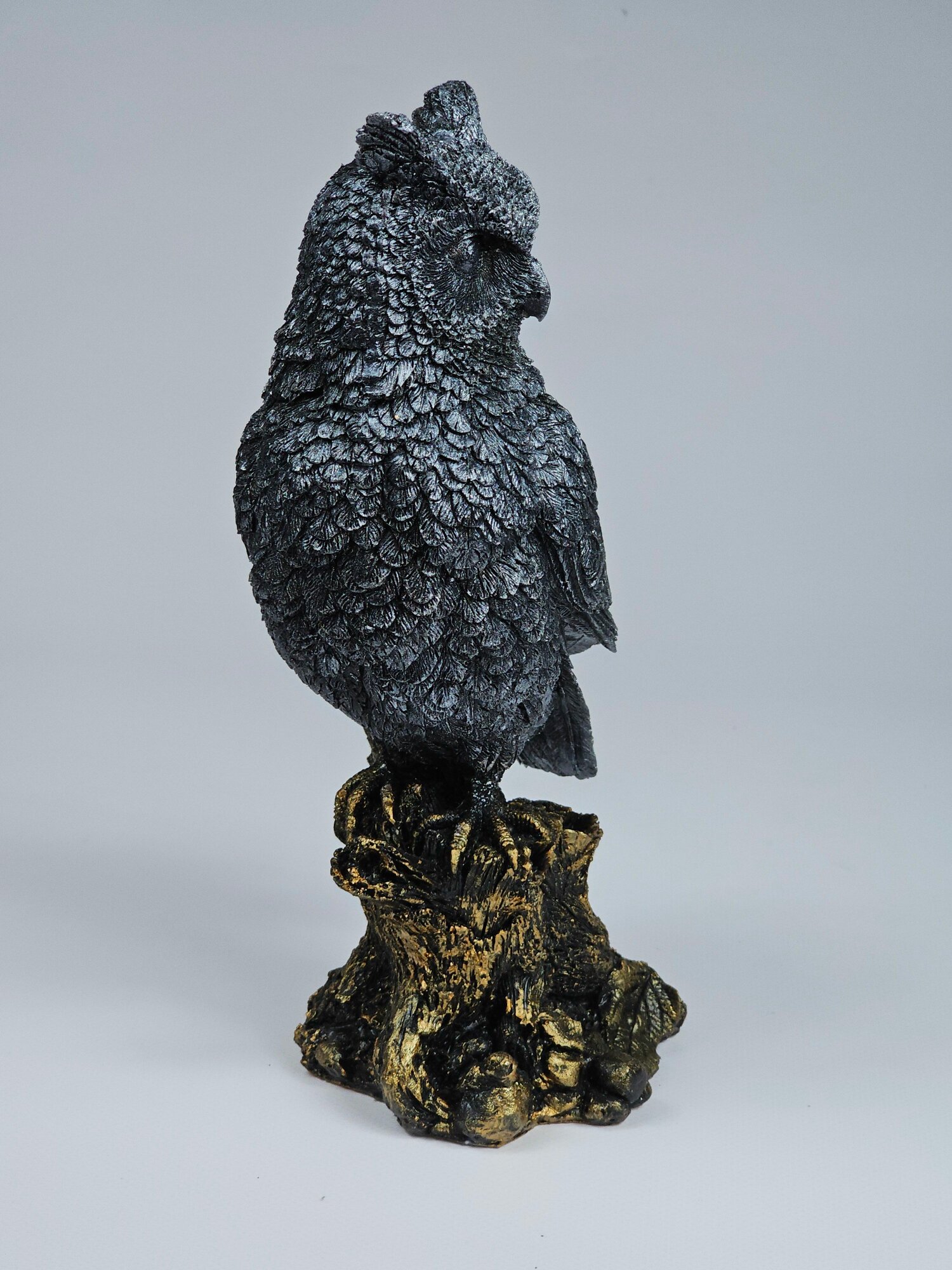 Статуэтка из искусственного камня (полистоуна) Филин NEW №3 бронзово-серебристый
