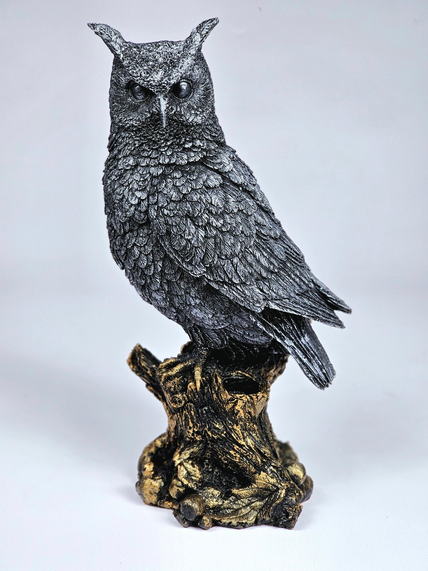 Статуэткаиз искусственного камня (полистоуна) Филин NEW №2 бронзово-серебристый