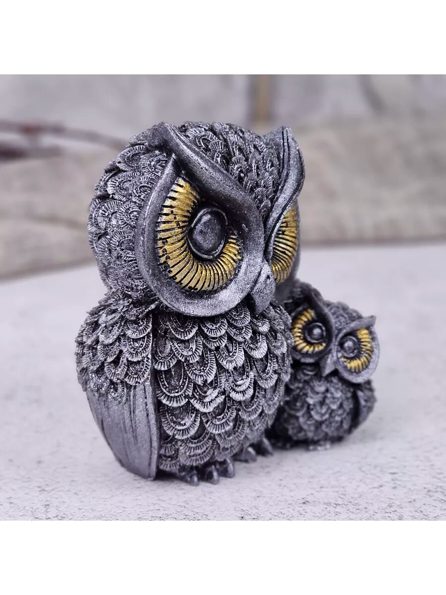 Купить Статуэтка из искусственного камня (полистоуна) Совушка №2 серебристая