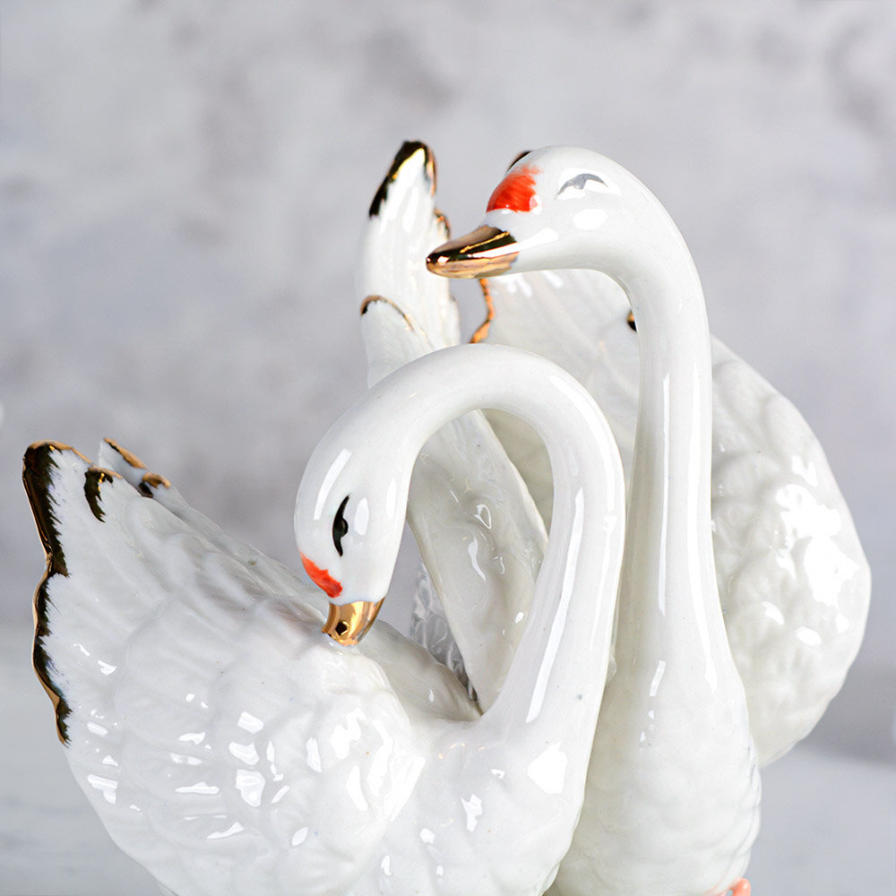 Статуэтка фарфоровая Семья лебедей 13 см / Фигурка интерьерная
