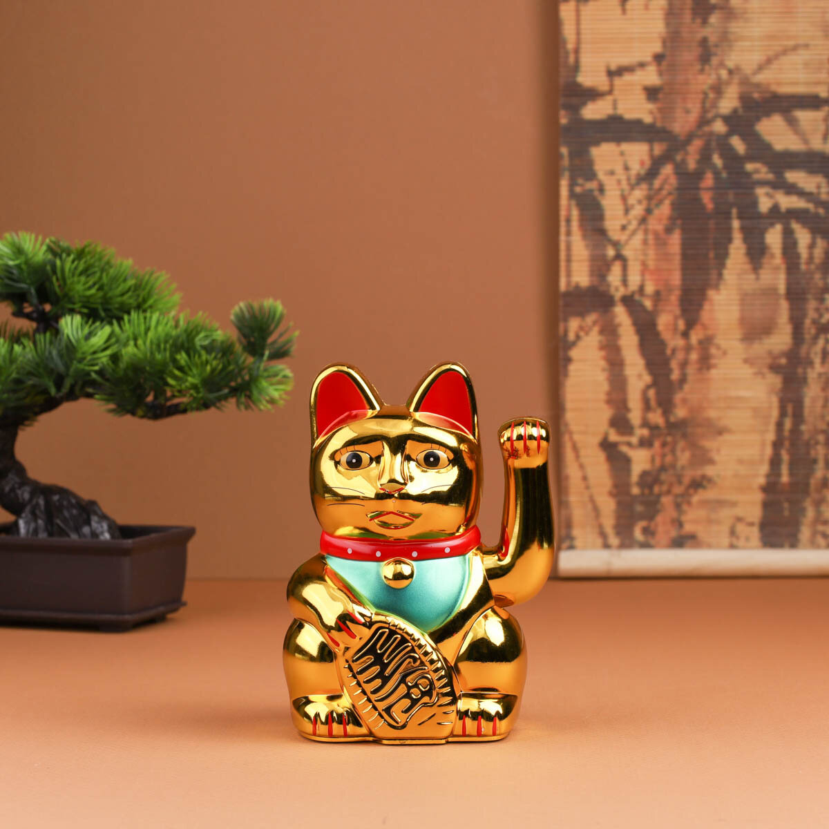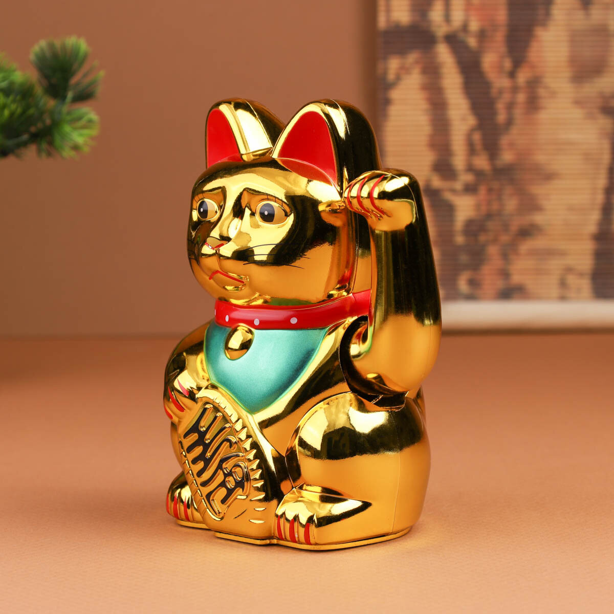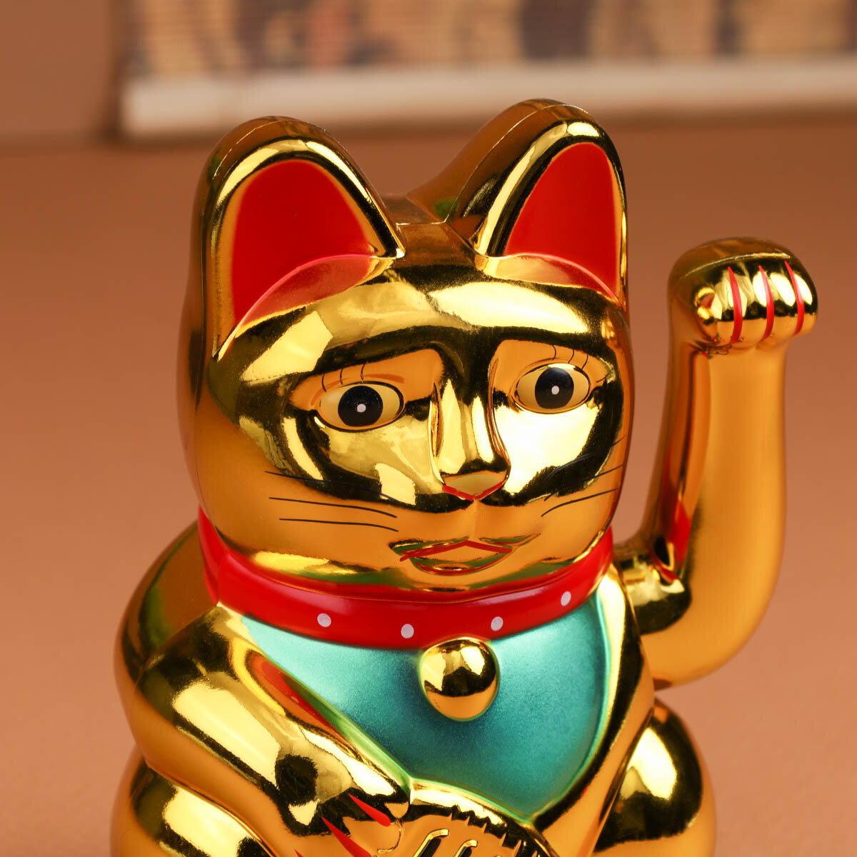 Купить Манэки нэко денежный золотой кот сувенир 15см на батарейке/1 шт