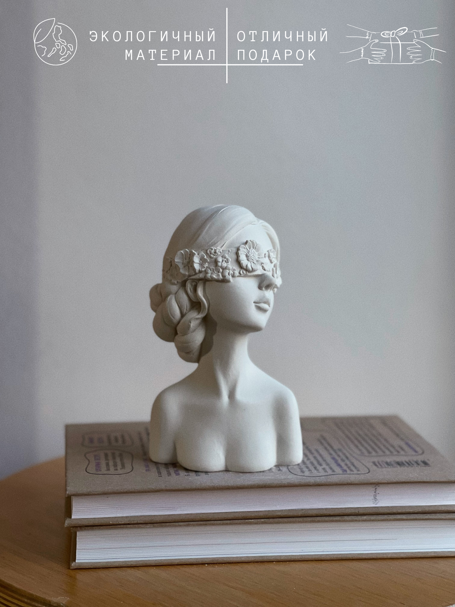 Статуэтка Девушка с цветочной повязкой, 15 см, гипс, декор, девочка интересное: