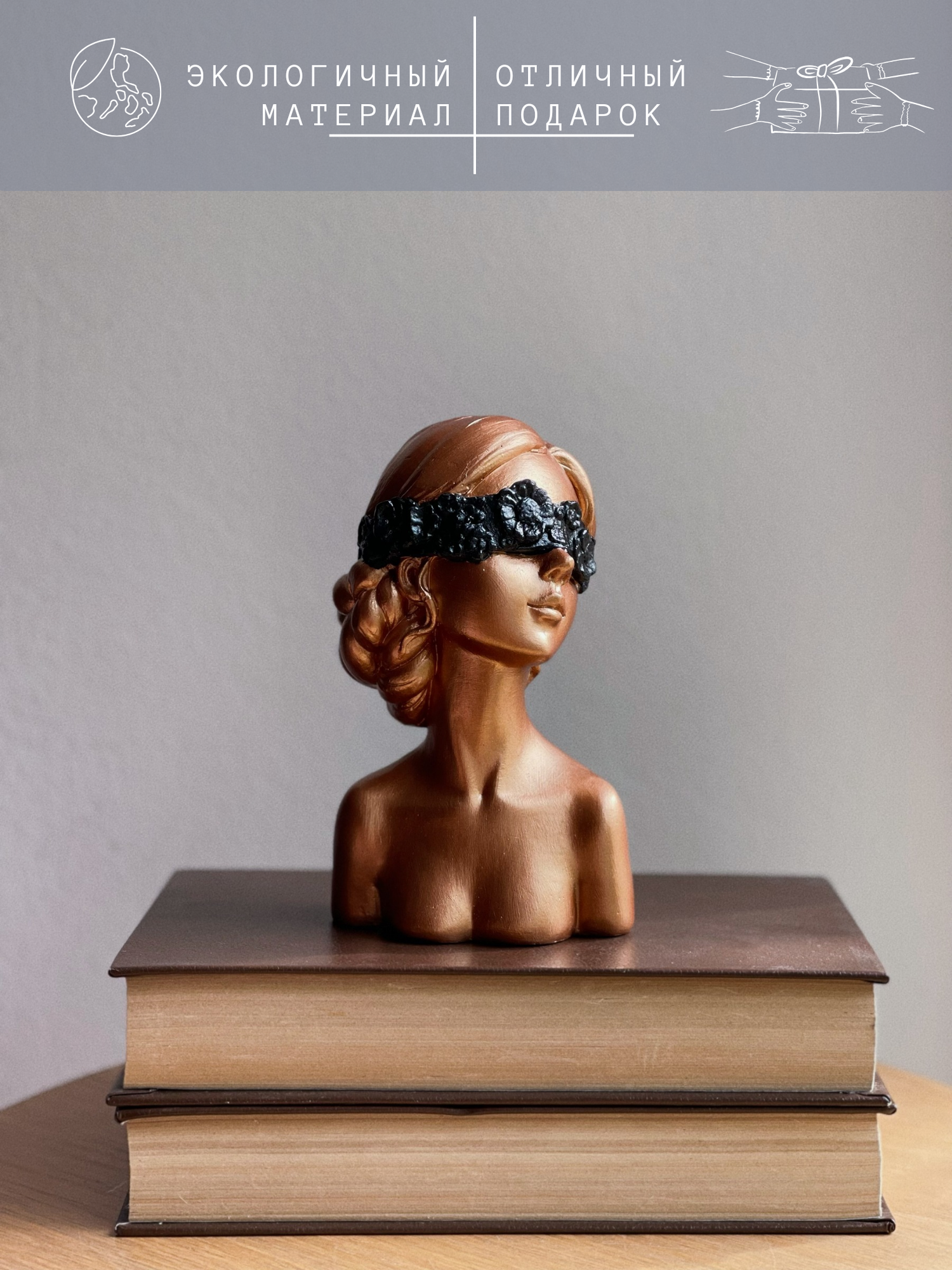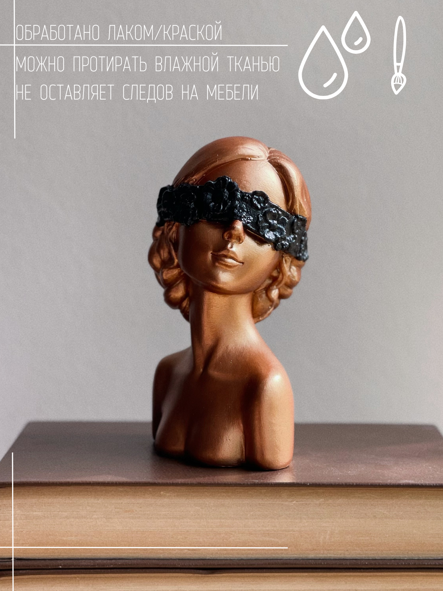Статуэтка Девушка с цветочной повязкой, 15 см, гипс, бронзовая с черным интересное: