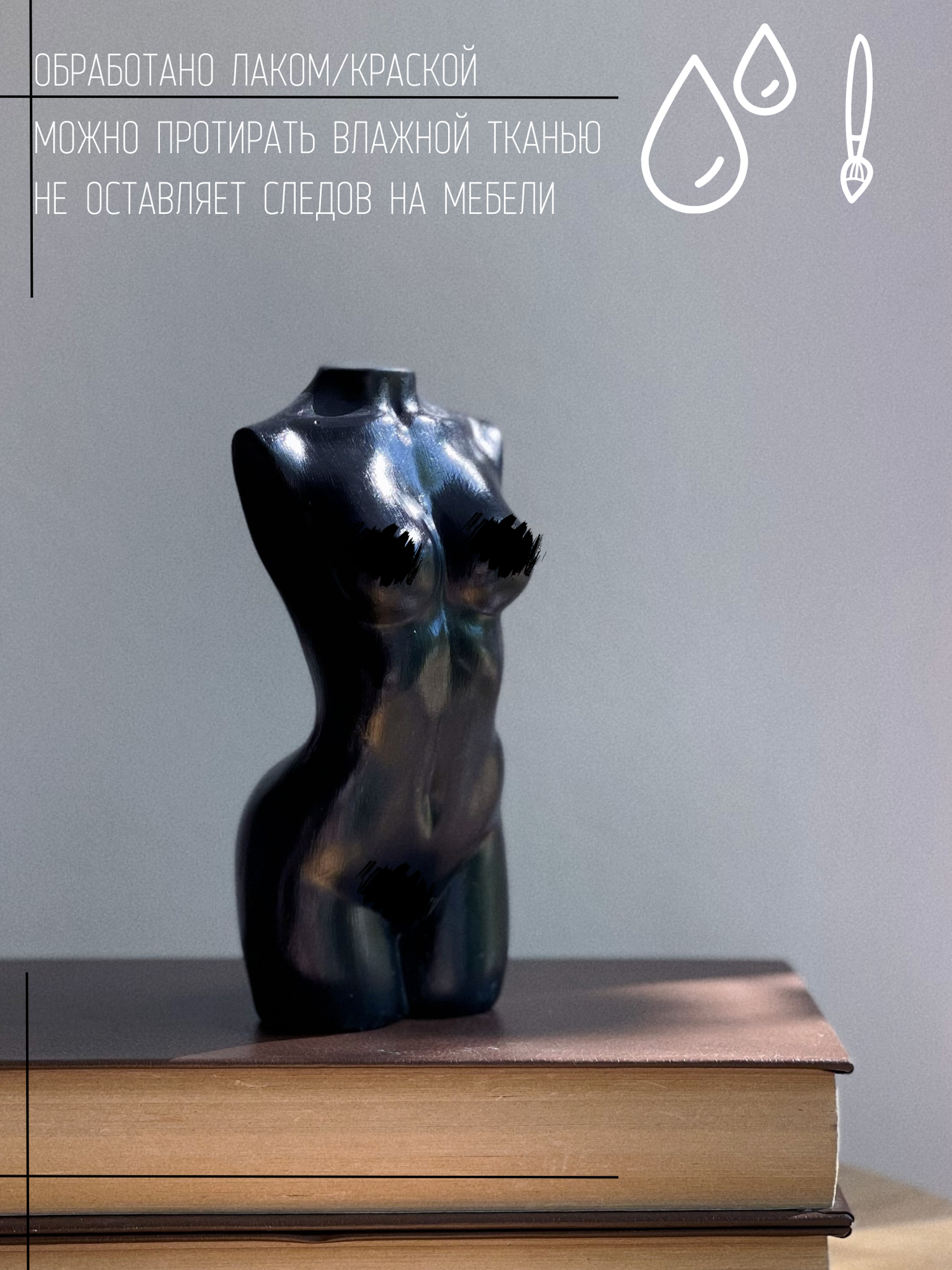 Статуэтка Женское тело, 15 см, гипс, черный цвет, бюст, фигура интересное: