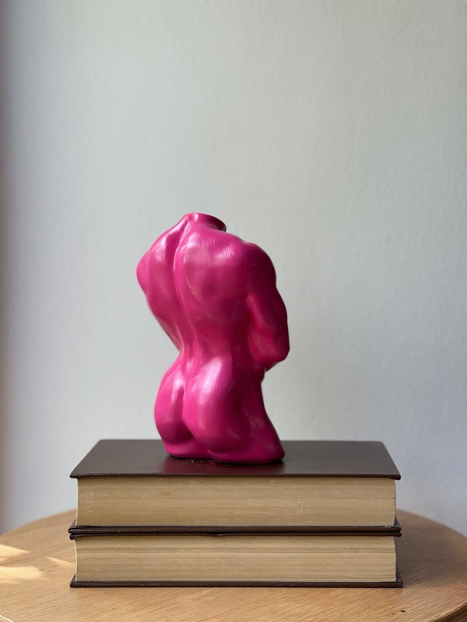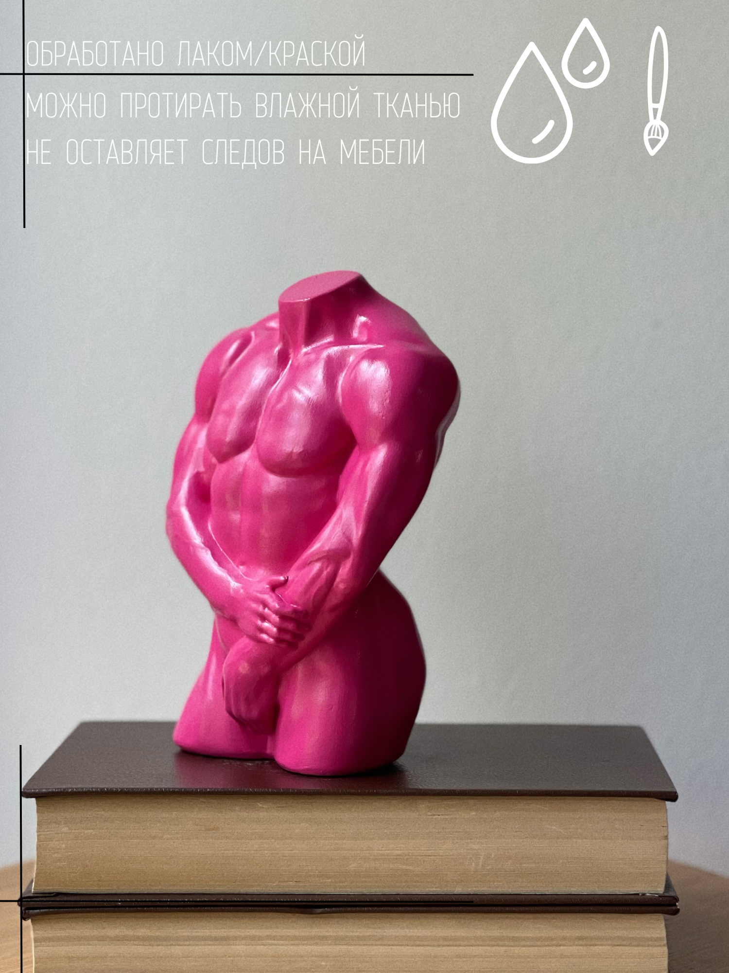 Статуэтка Мужское тело, розовый фуксия, 16 см, гипс, торс, фигура интересное:
