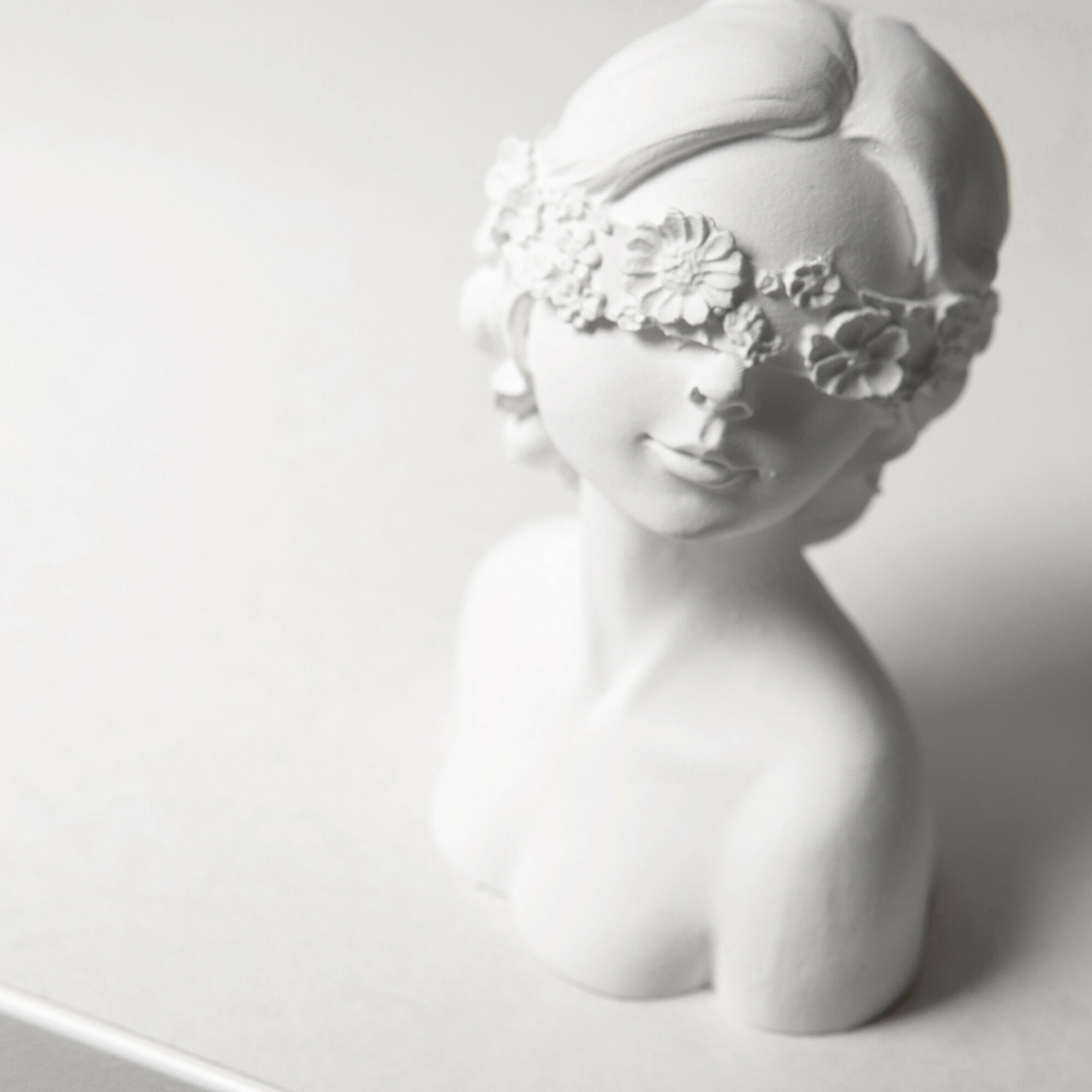 Купить Cтатуэтка для интерьера. Статуэтка голова девушки с цветами, статуэтка из гипса без лака и краски 9см.