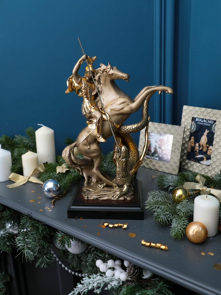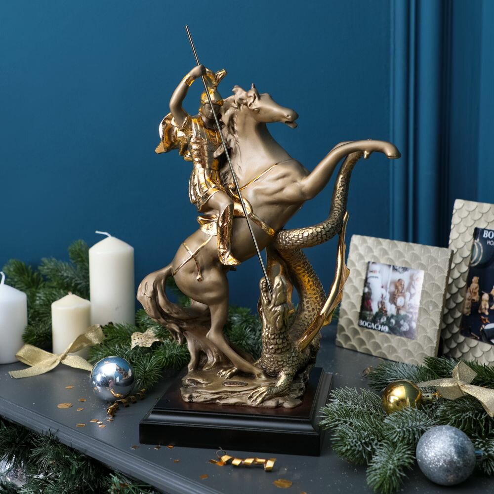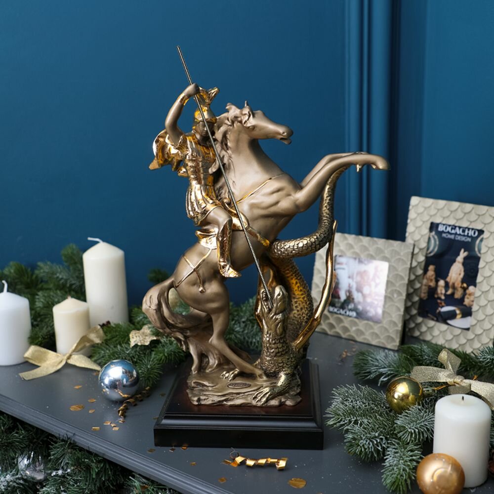 Купить Статуэтка Bogacho Георгий Победоносец из литьевого мрамора для украшения интерьера гостиной, спальни, кухни