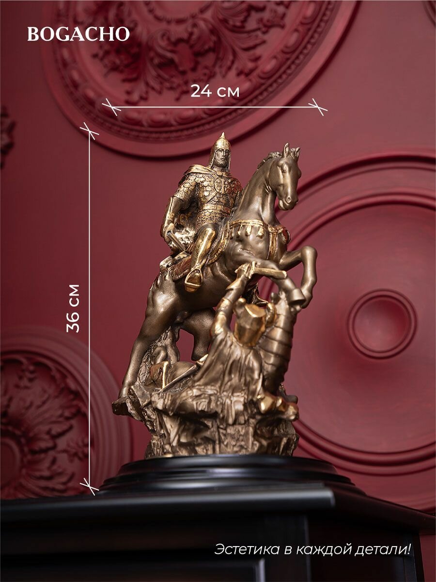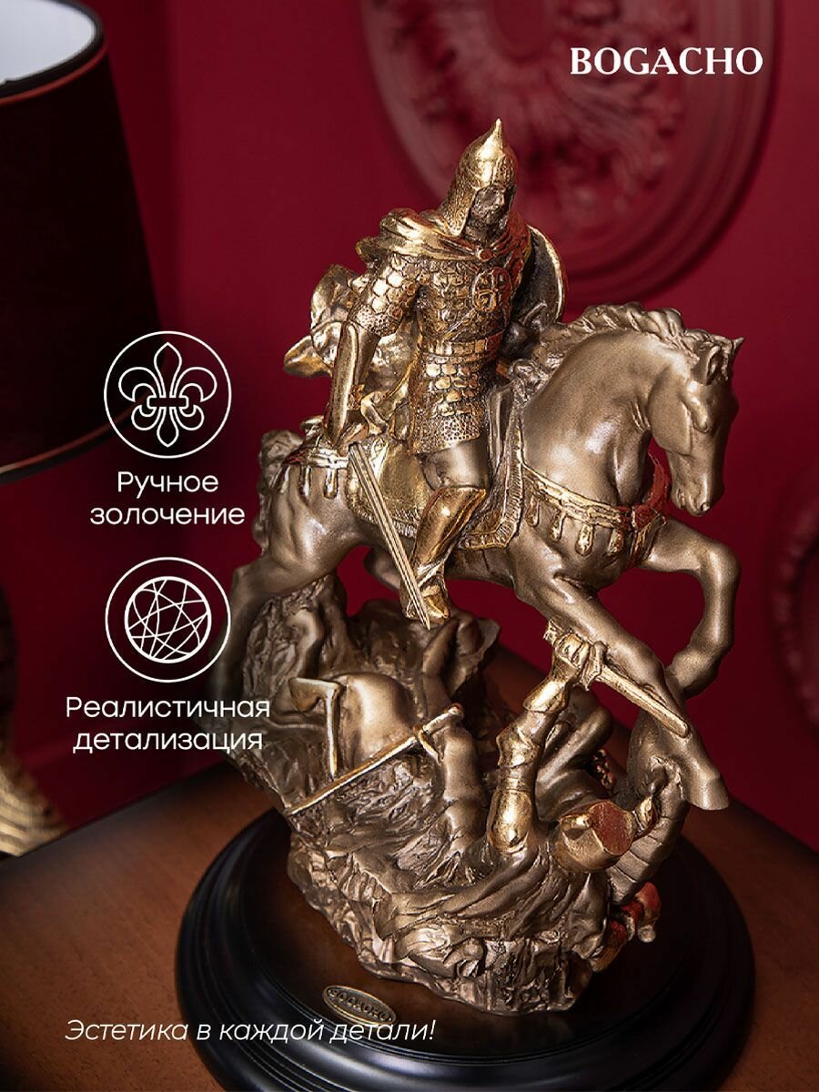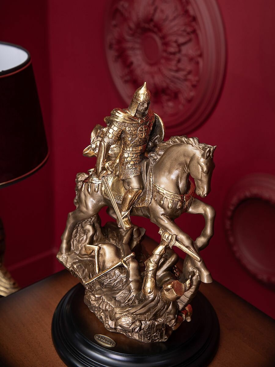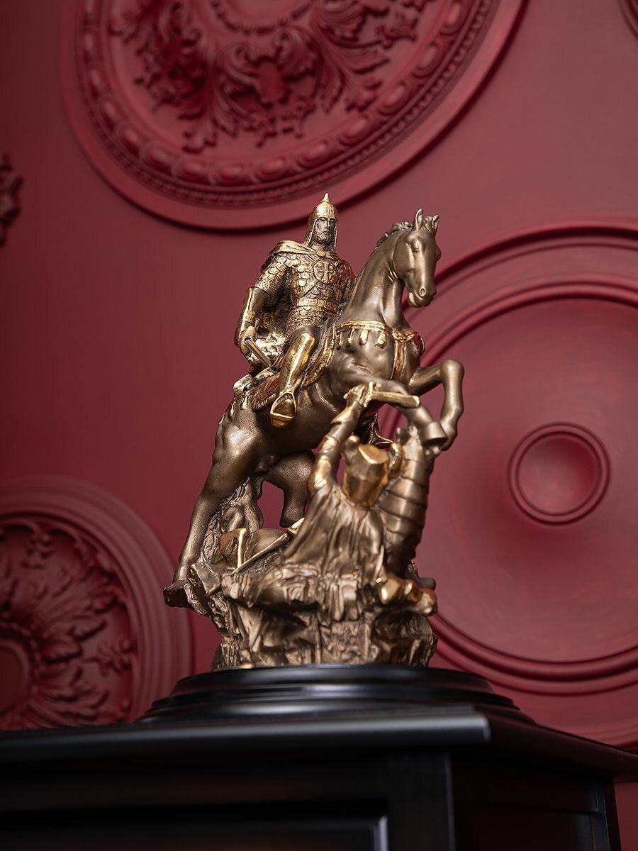 Статуэтка Bogacho Георгий Победоносец из литьевого мрамора для украшения интерьера гостиной, спальни, кухни