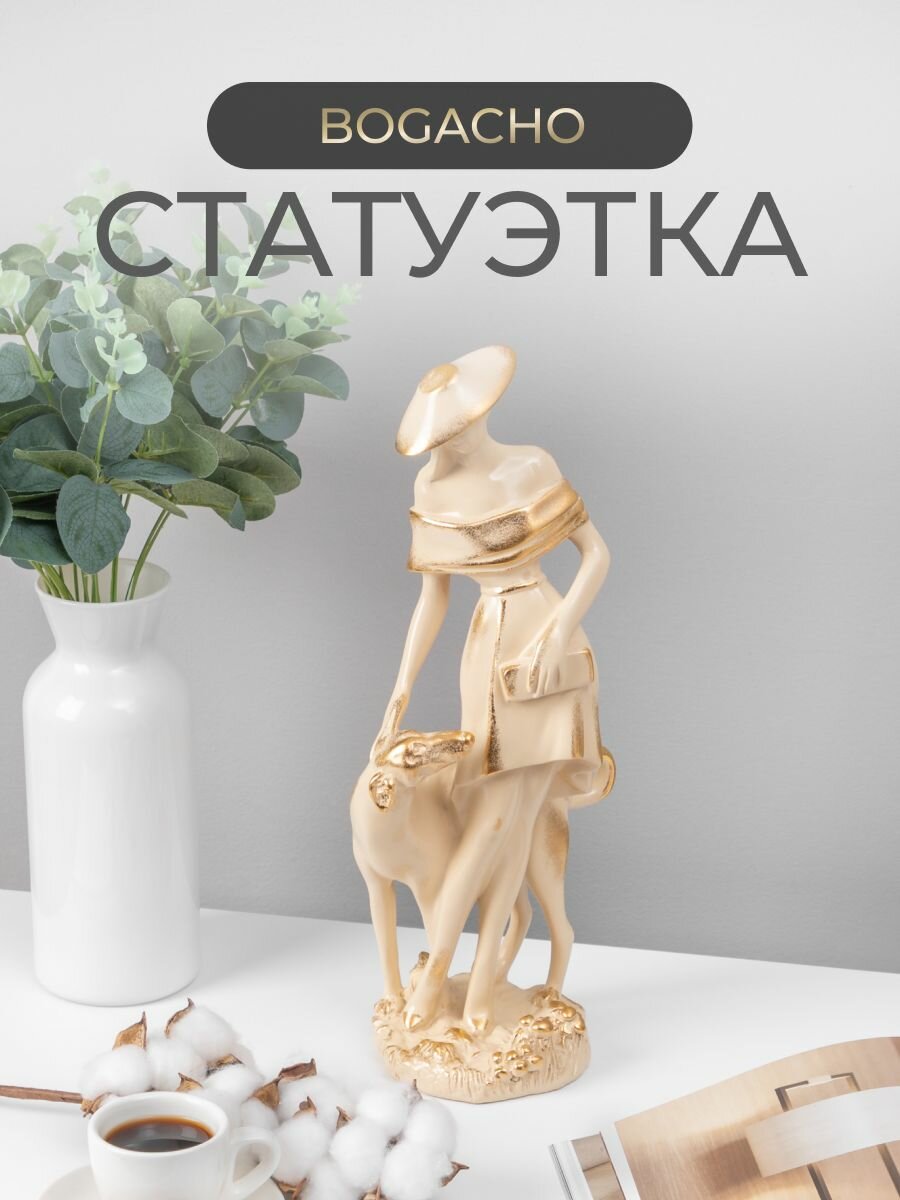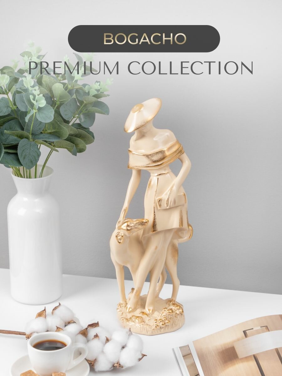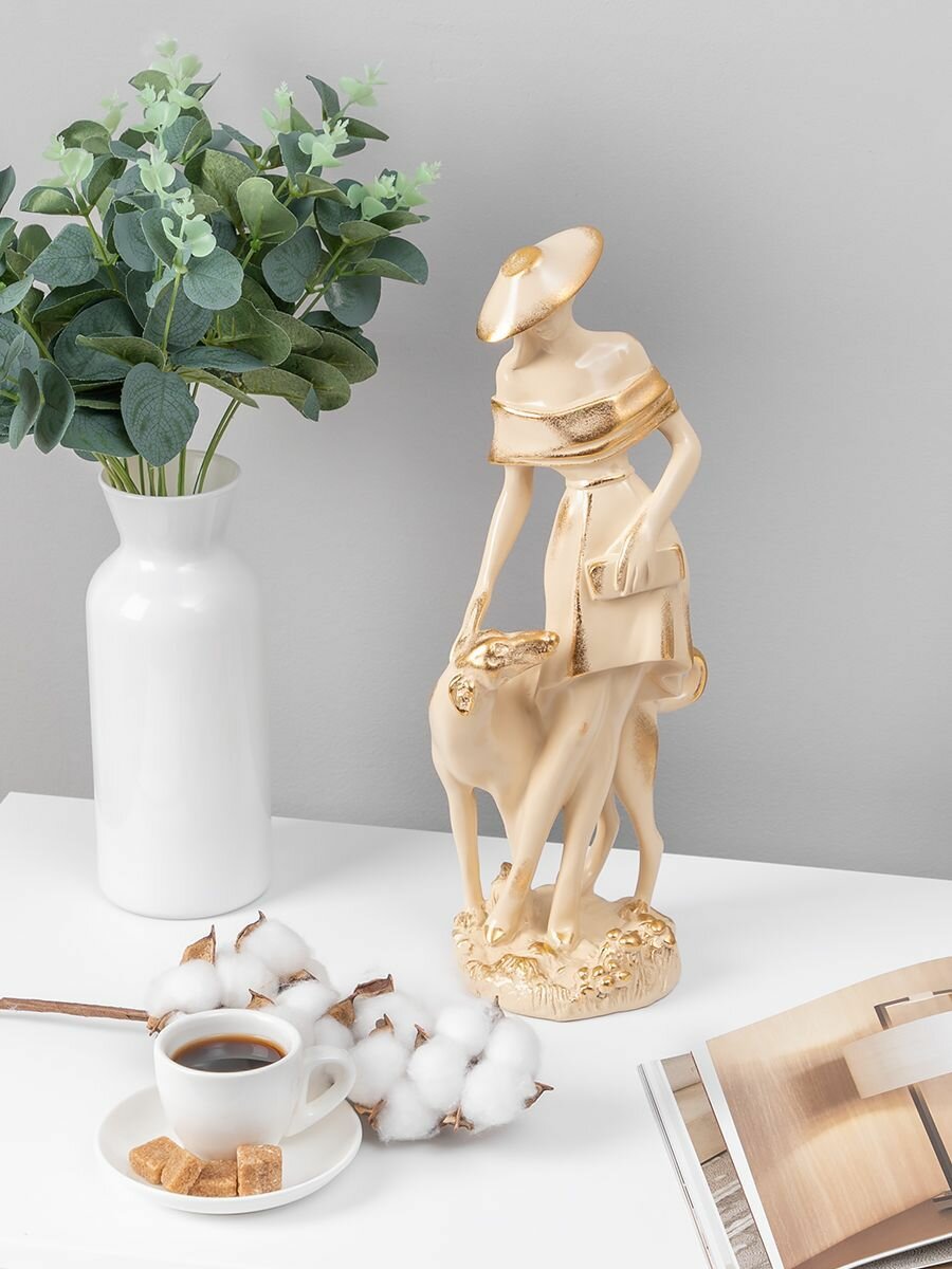 Купить Статуэтка Bogacho Девушка с собакой из литьевого мрамора для украшения интерьера гостиной, спальни, кухни