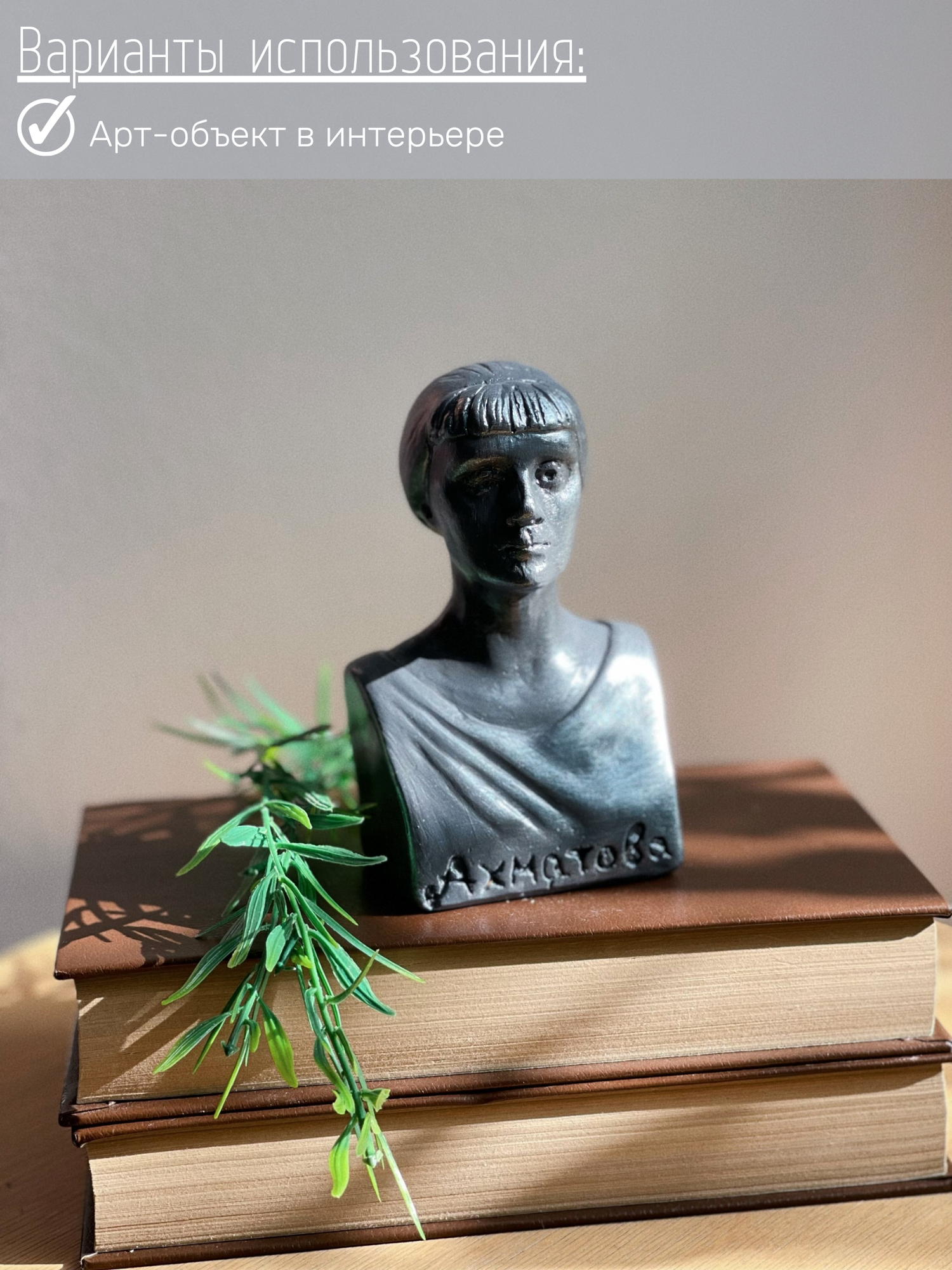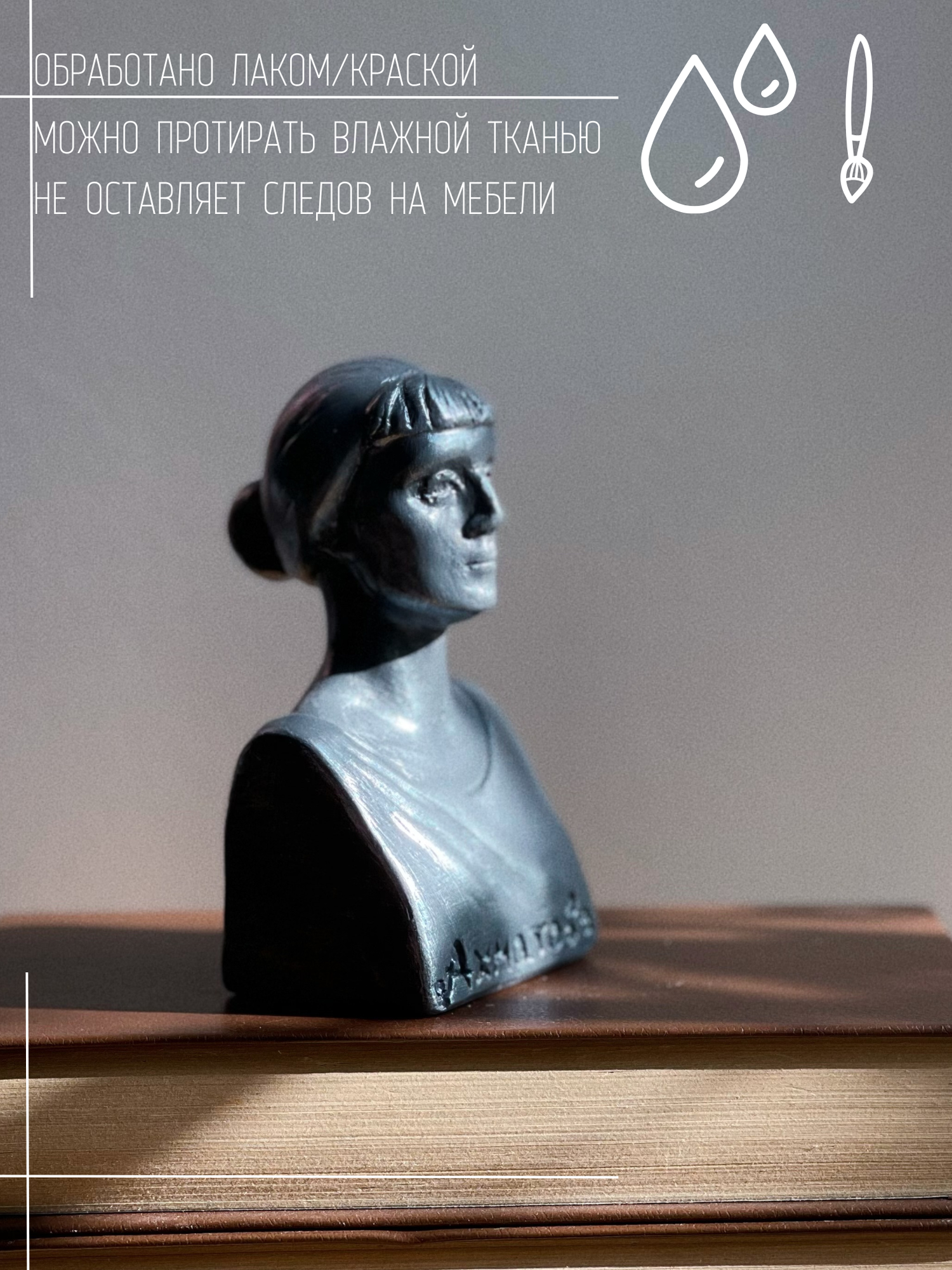 Статуэтка Бюст Анны Ахматовой, 12 см, серо-серебристый цвет, гипс, поэтесса интересное: