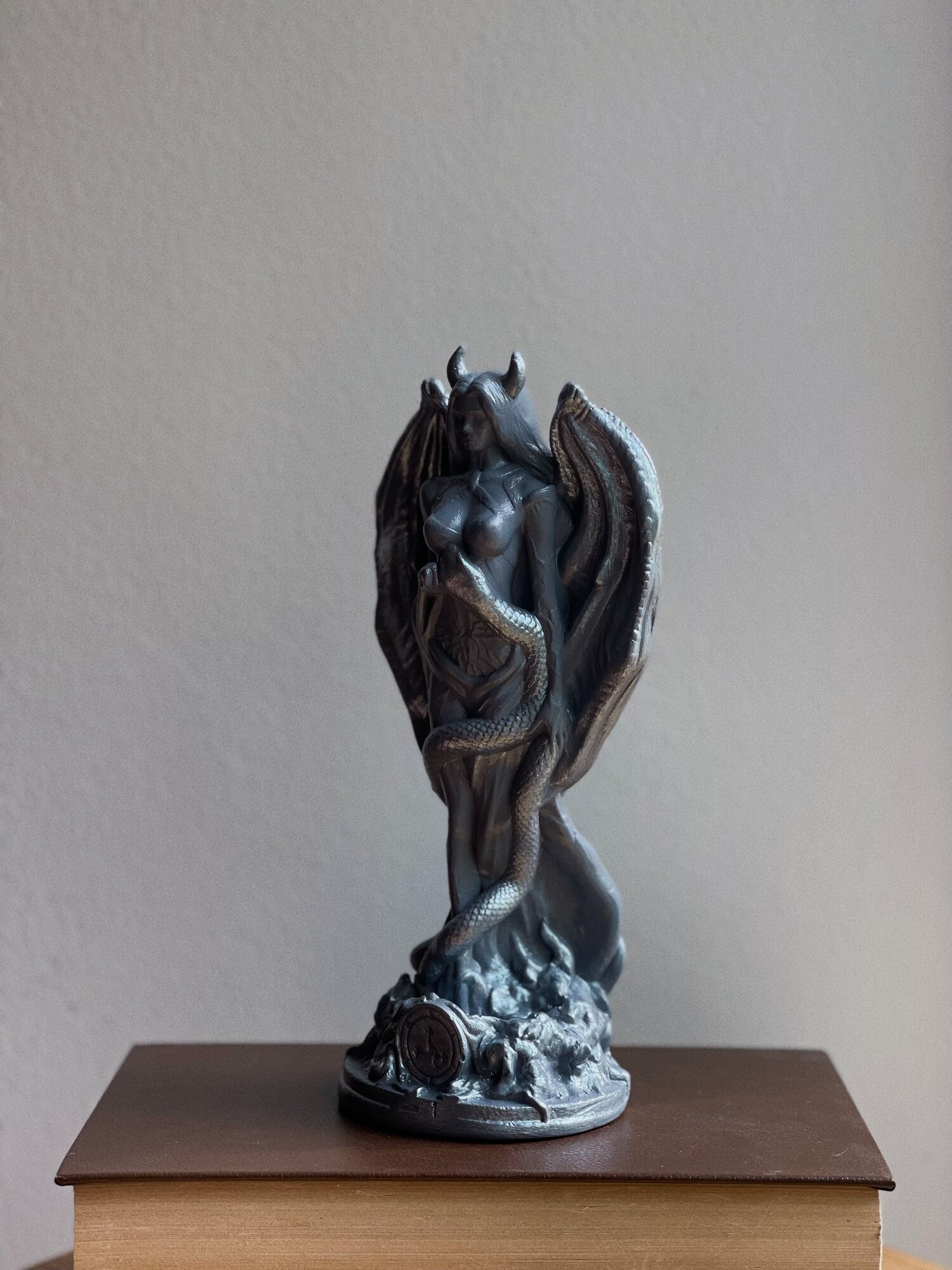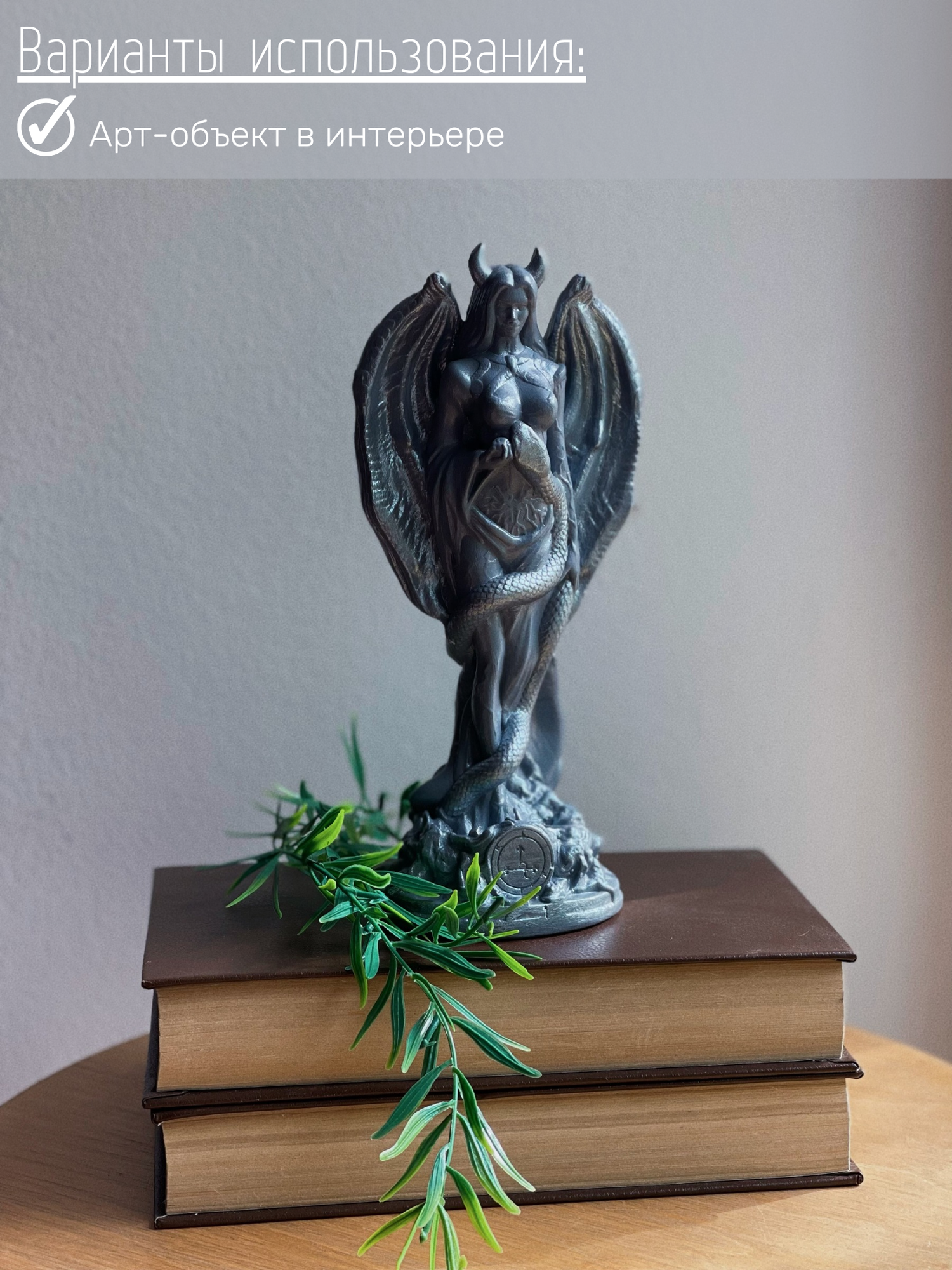 Статуэтка Лилит, 21 см, гипс, серый с серебристым, алтарный декор интересное: