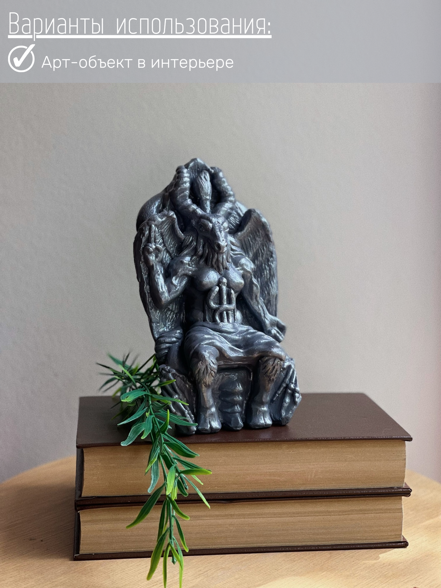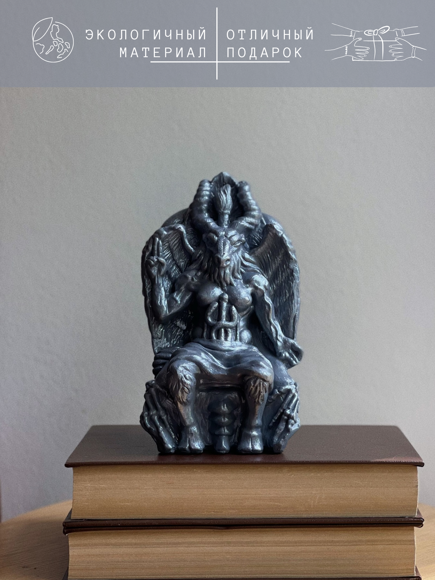 Статуэтка Бафомет, дьявол, серый с серебристым, 18 см, гипс, алтарная интересное: