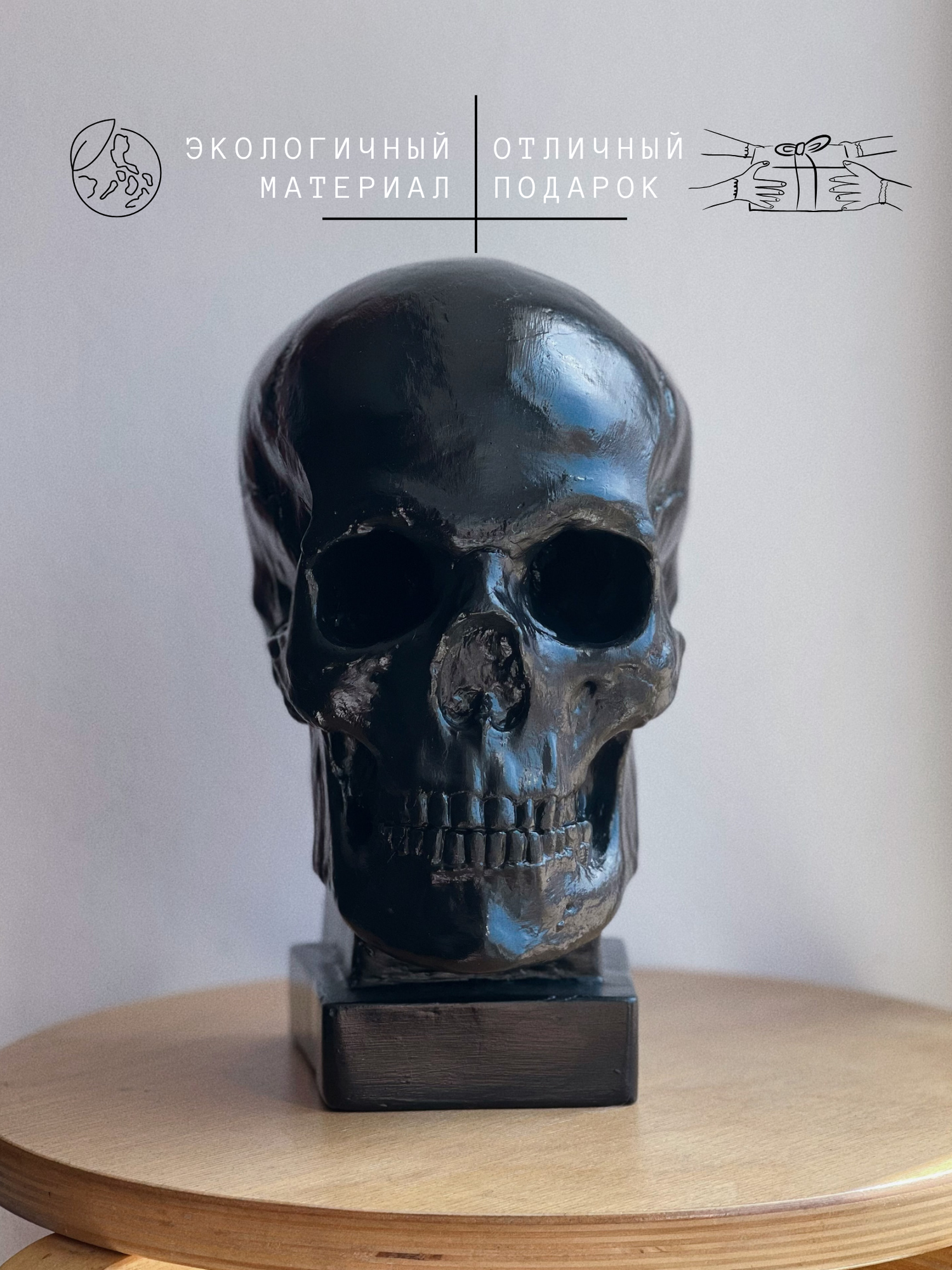Купить Гипсовая статуэтка "Череп на подставке", черный цвет, размер 26 х 19 см