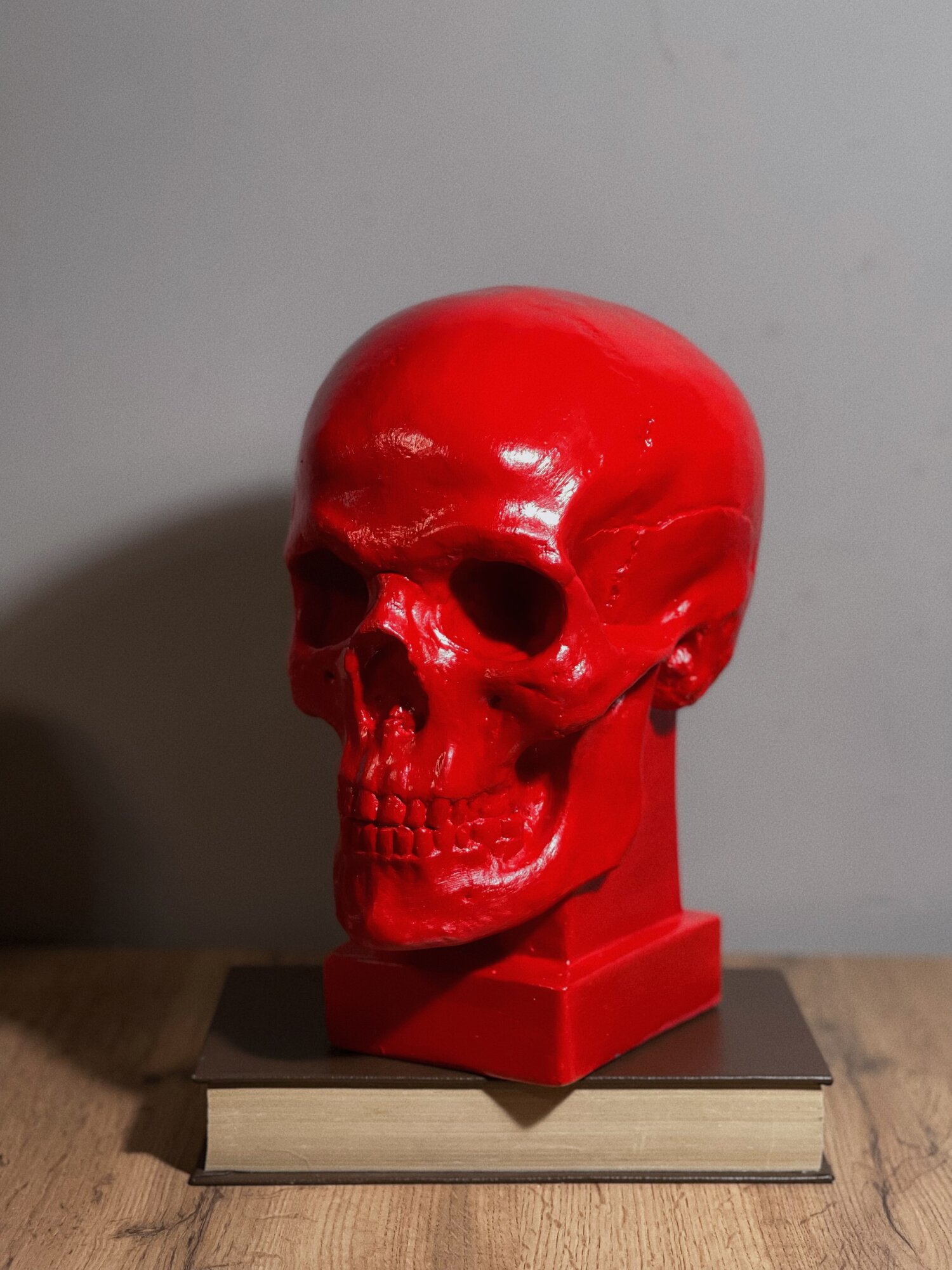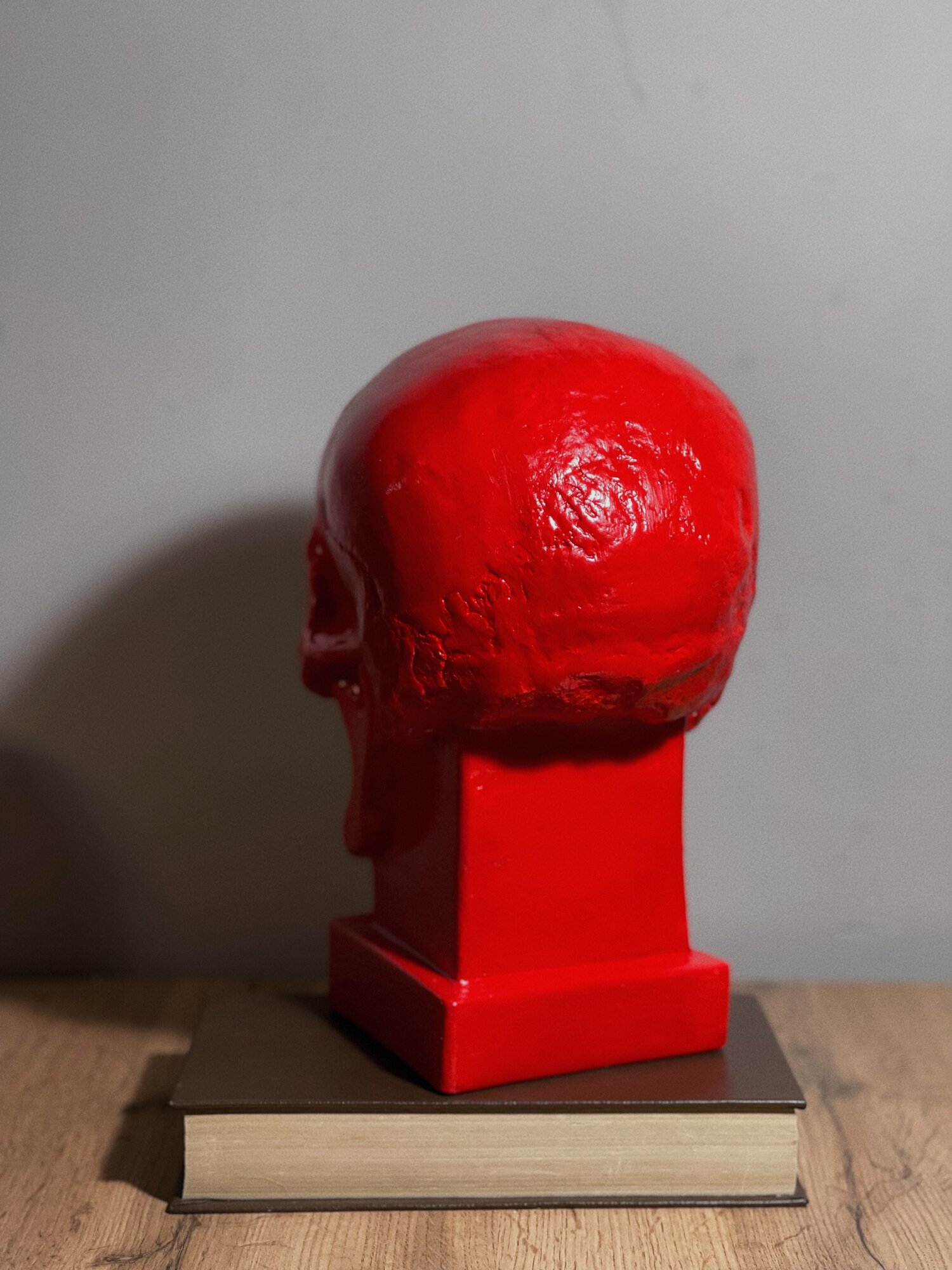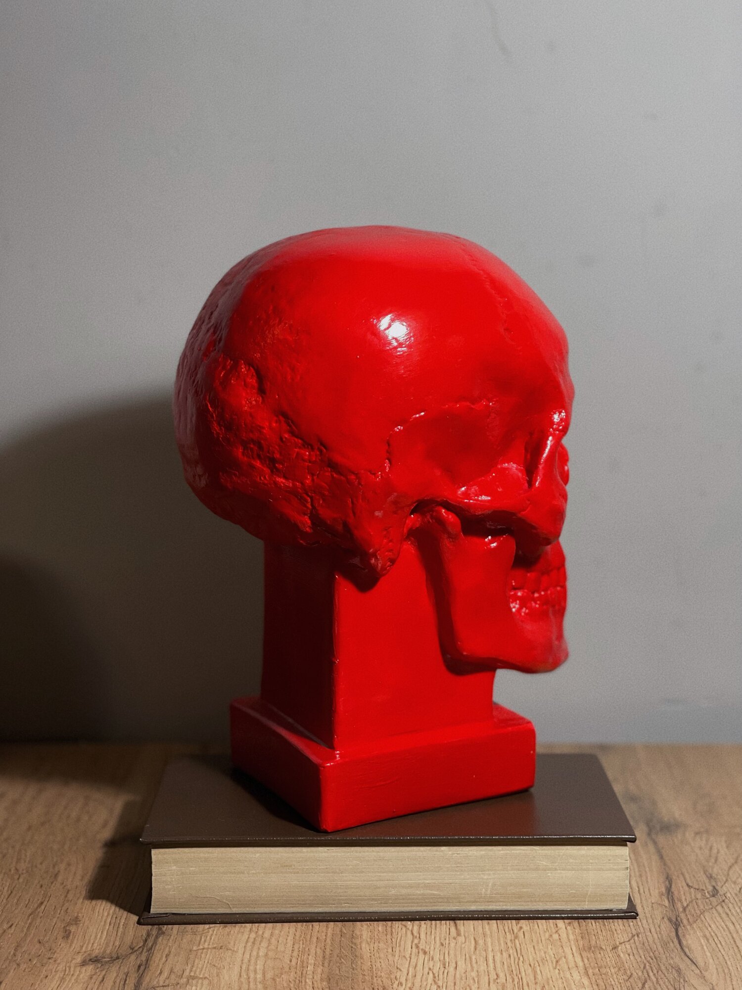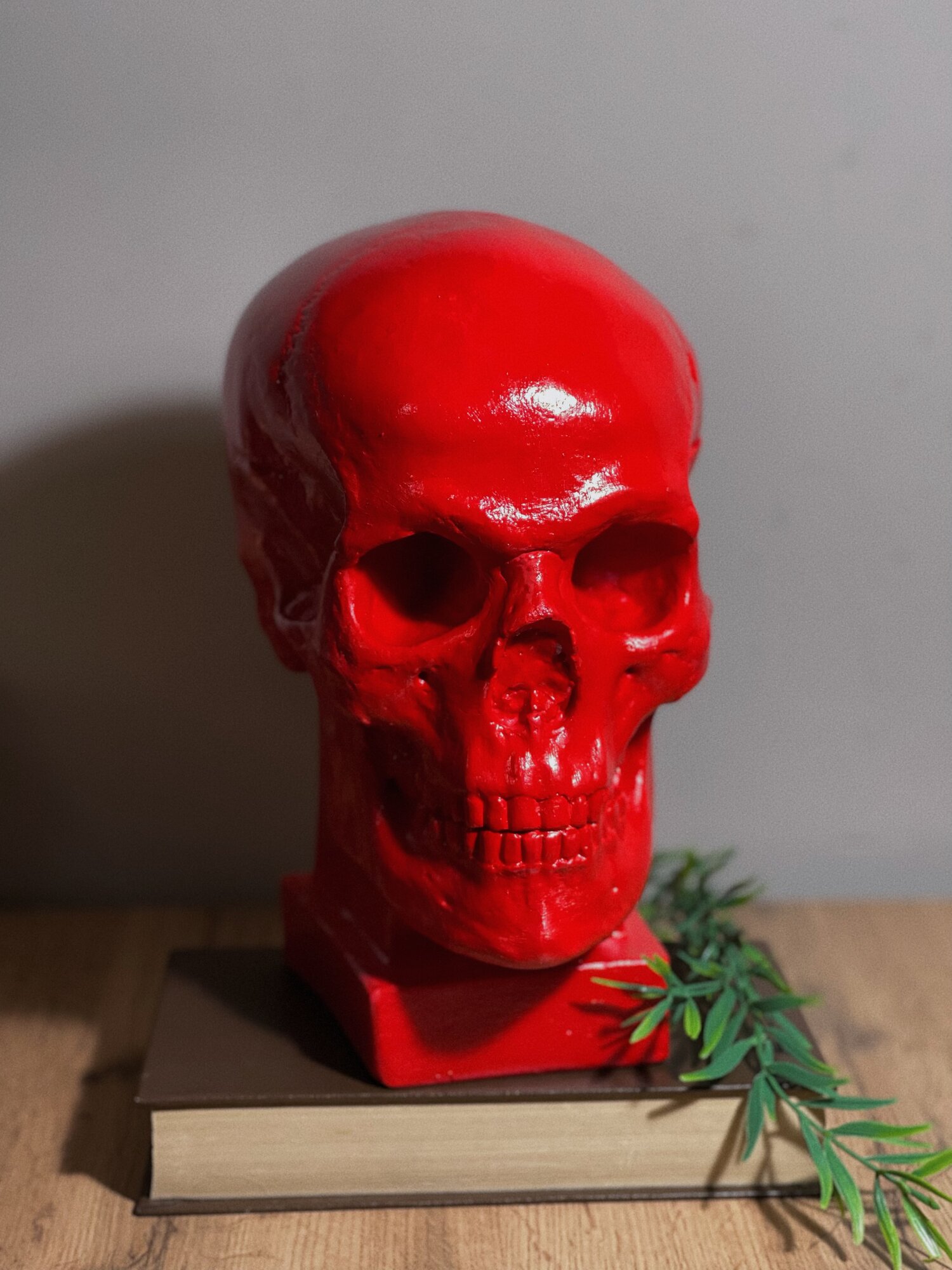 Статуэтка Череп анатомический из гипса в красном цвете, 15х15х20 см