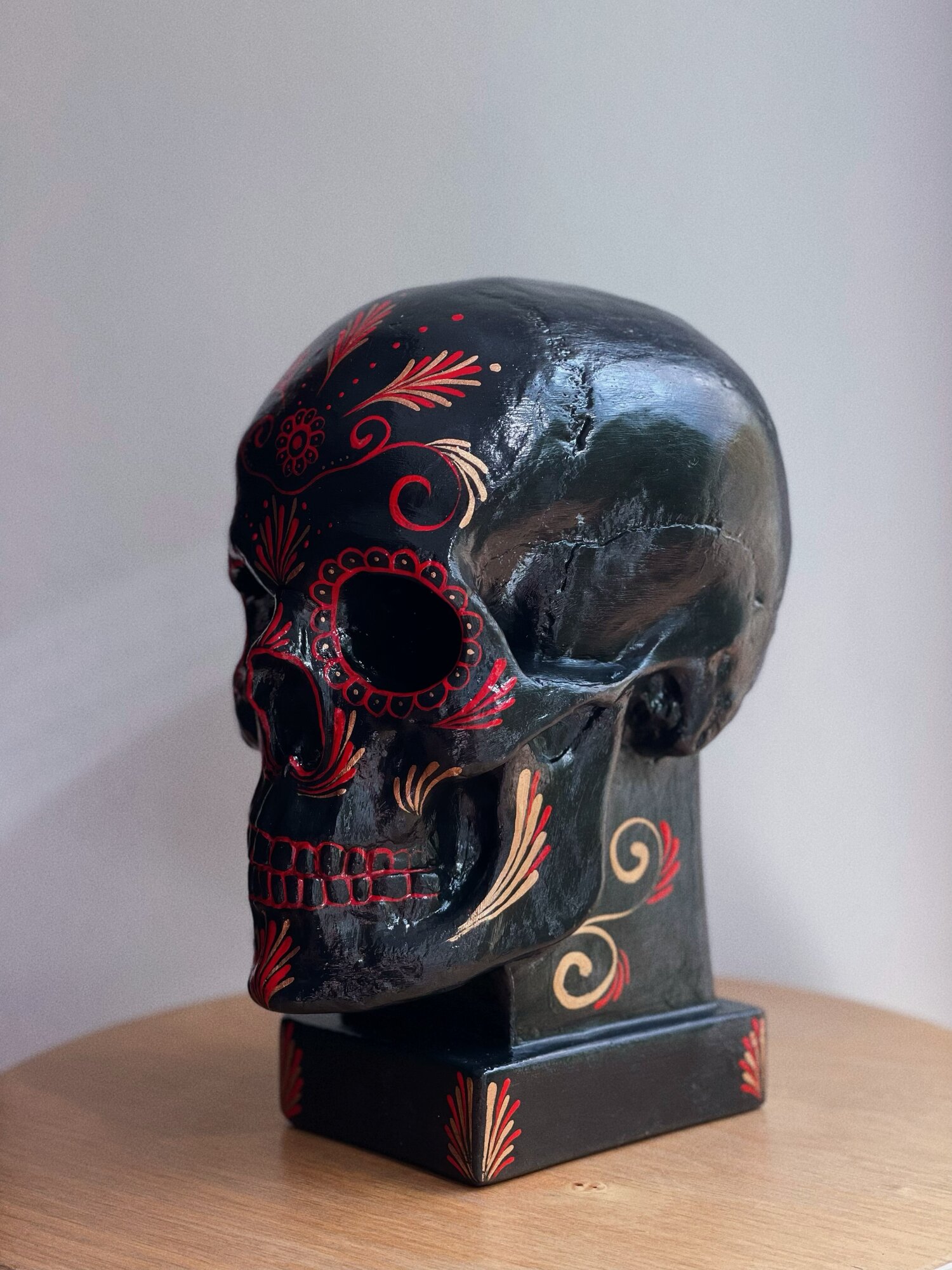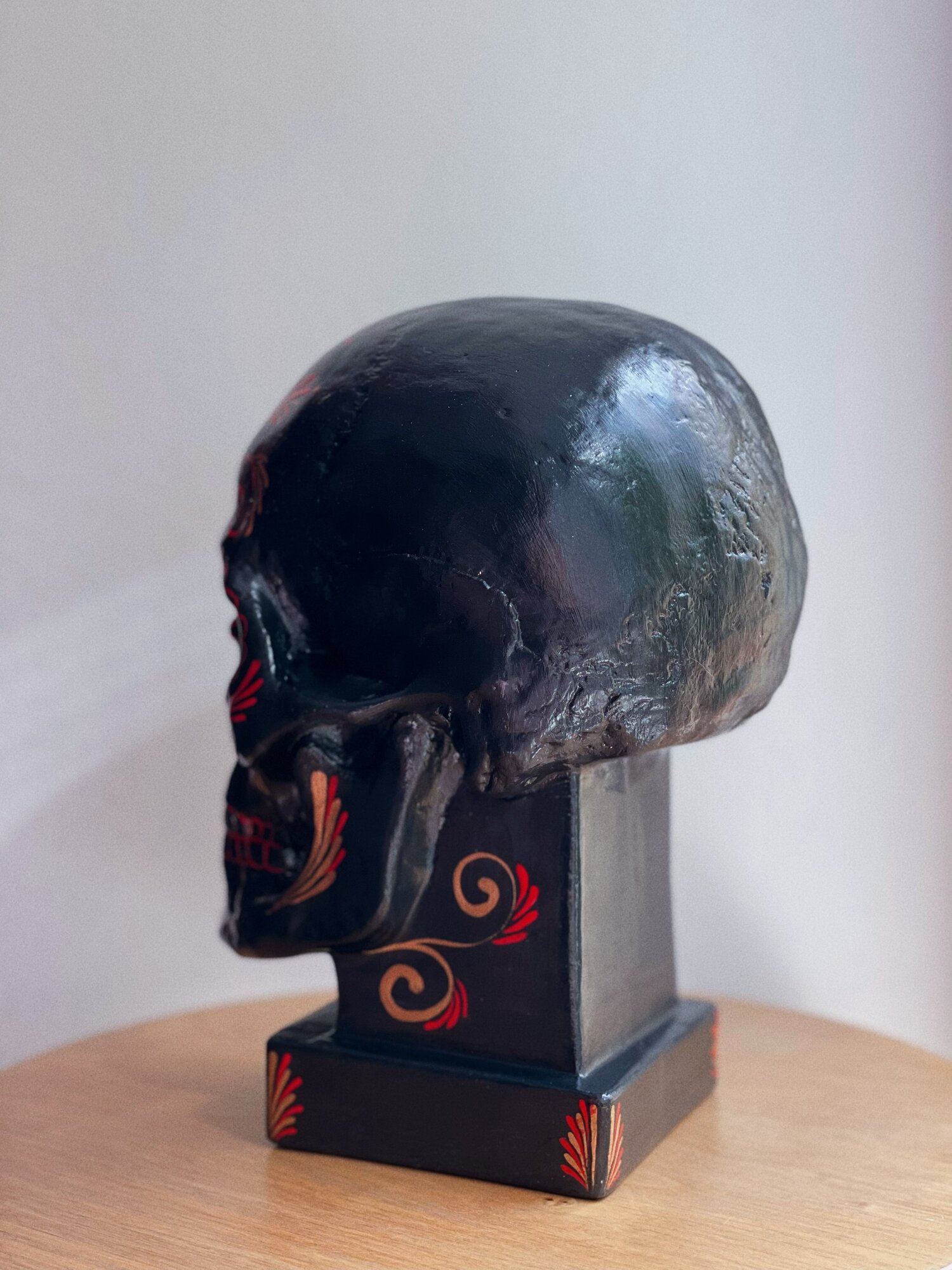Гипсовая статуэтка "Череп на подставке", красный цвет, размер 26 х 19 см