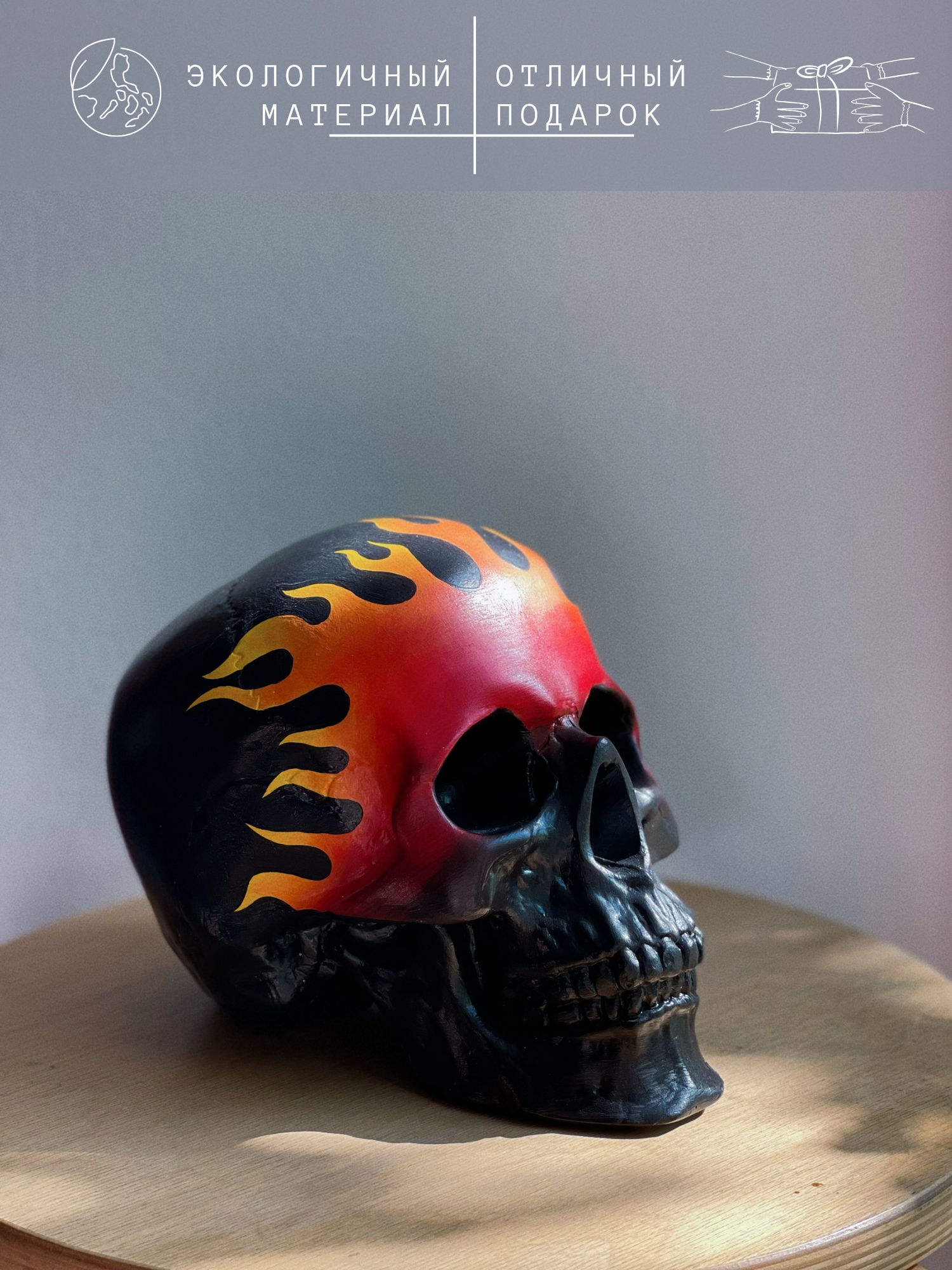 СохранитьСтатуэтка Череп анатомический из гипса, 15х15х20 см, с рисунком в виде огня интересное: