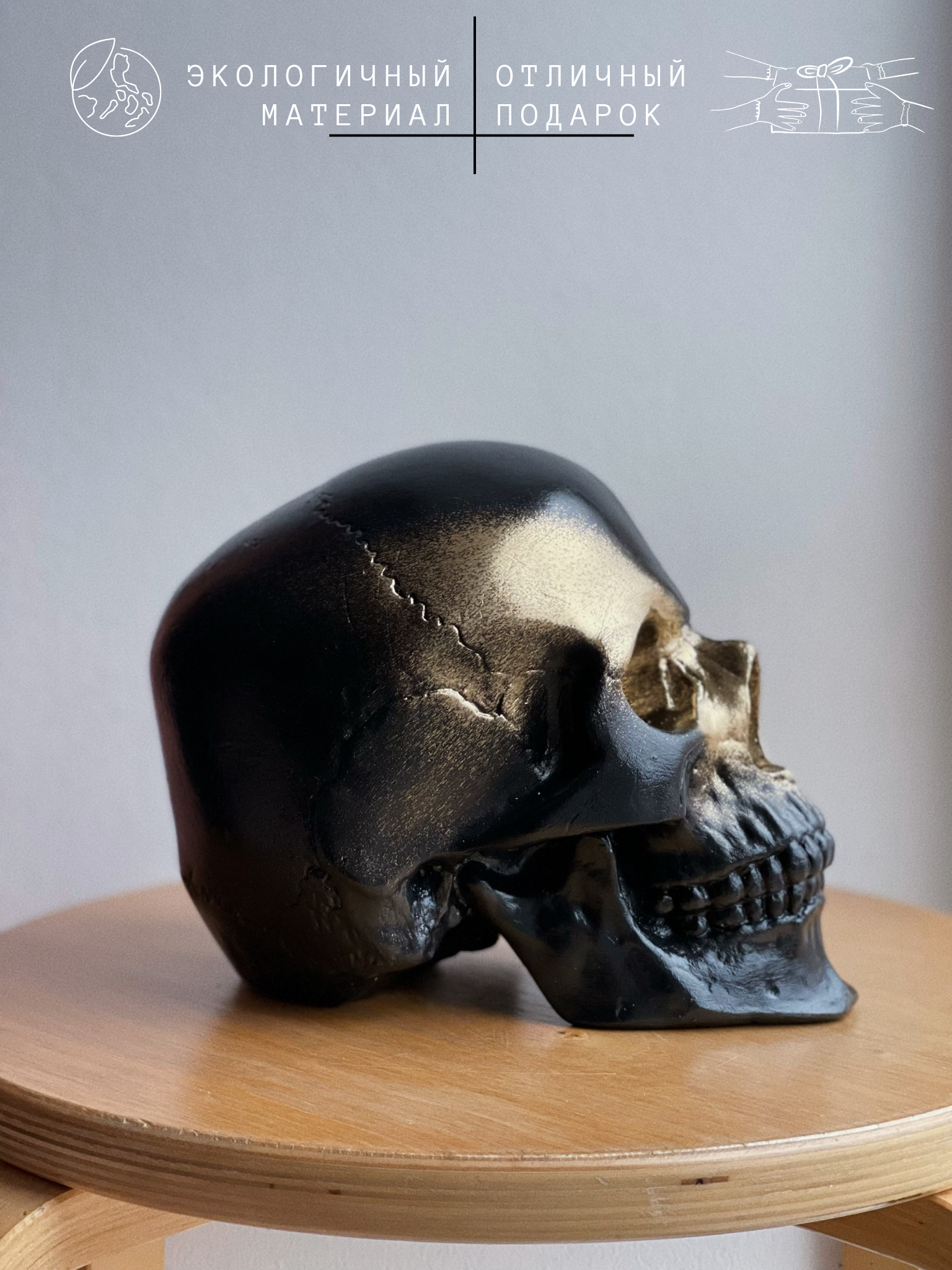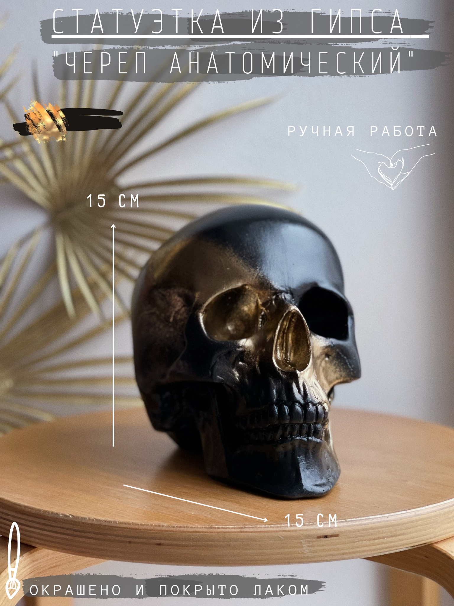 СохранитьГипсовая фигура Череп анатомический, статуэтка, Н15 см х 20 см, черно-золотой интересное: