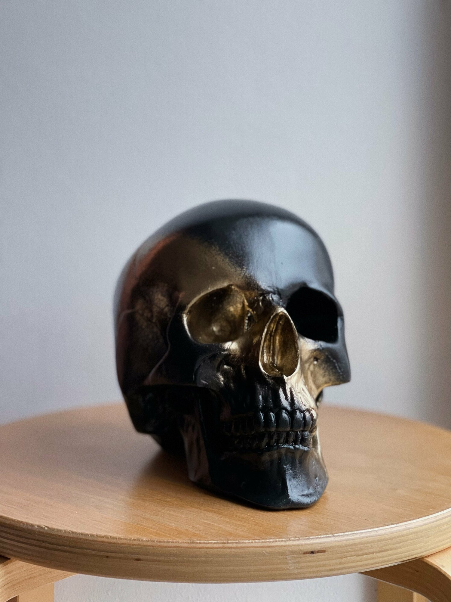 Статуэтка Череп анатомический из гипса в черном цвете с золотом, 15х15х20 см