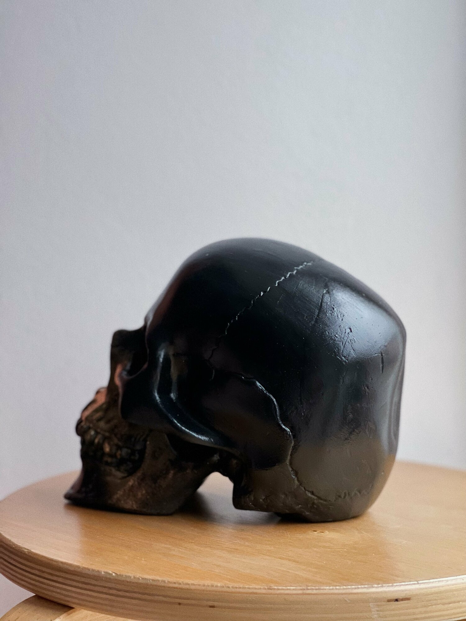 Гипсовая статуэтка "Череп на подставке", черный цвет, размер 26 х 19 см