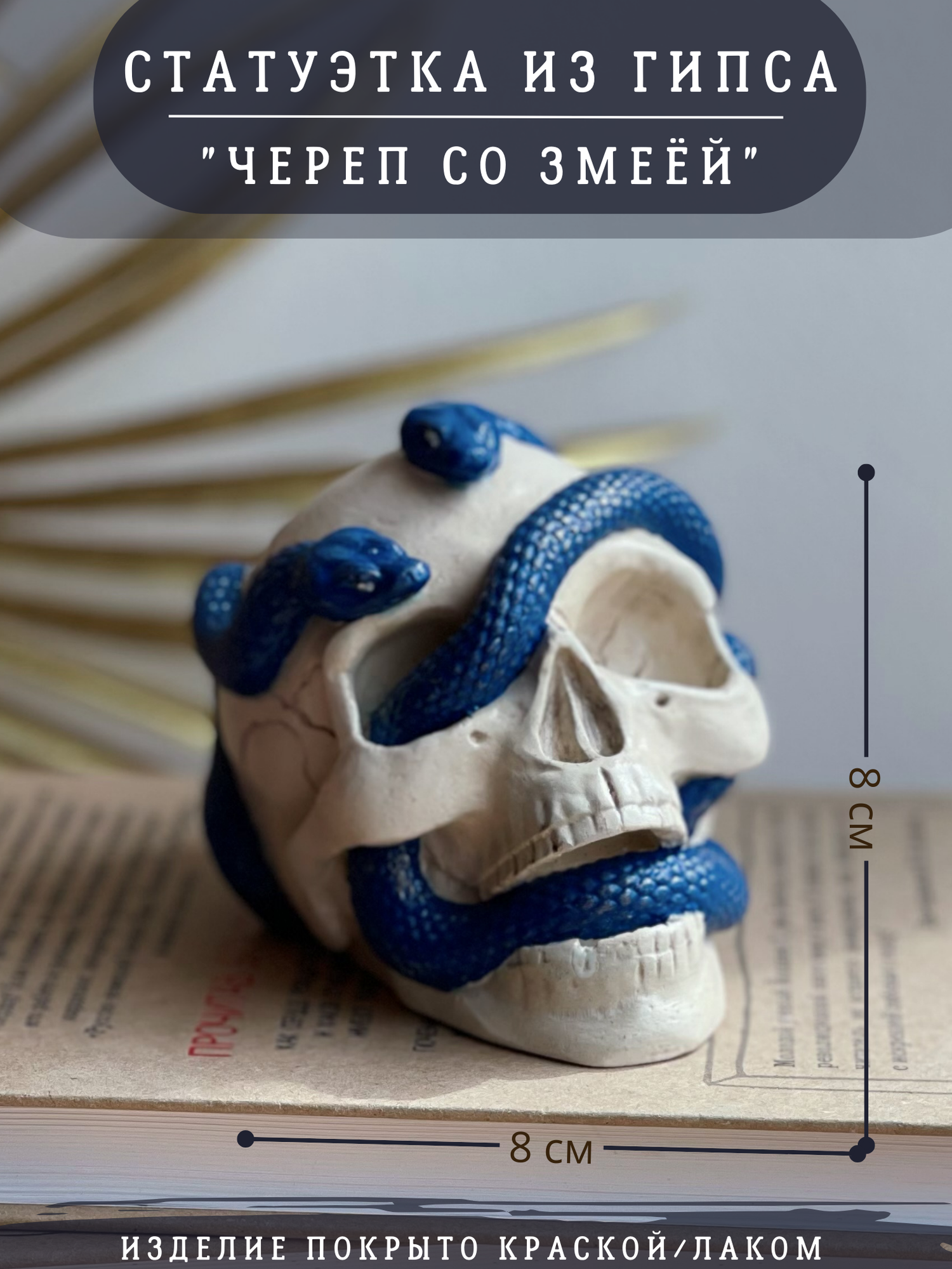 Статуэтка Череп со змеями, 10х8х8 см, гипс, декор с символом года 2025