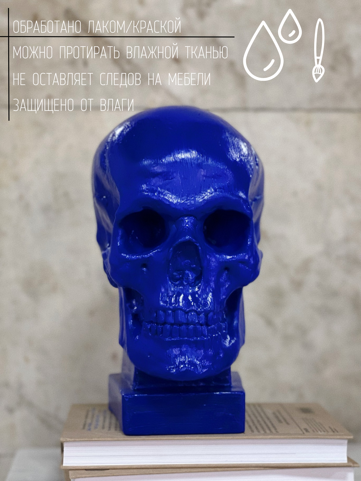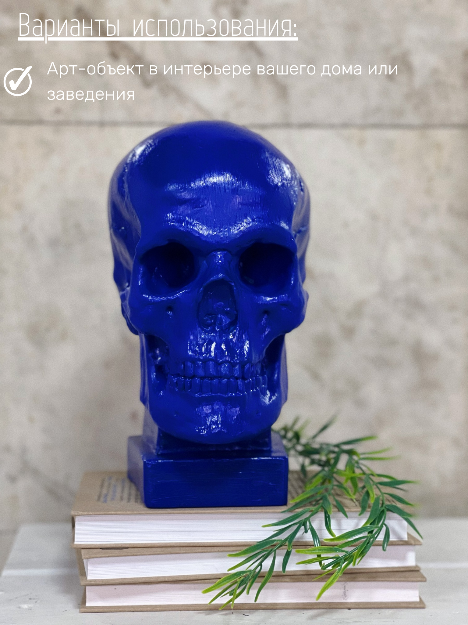 СохранитьГипсовая статуэтка "Череп на подставке", синий цвет, размер 26 х 19 см интересное: