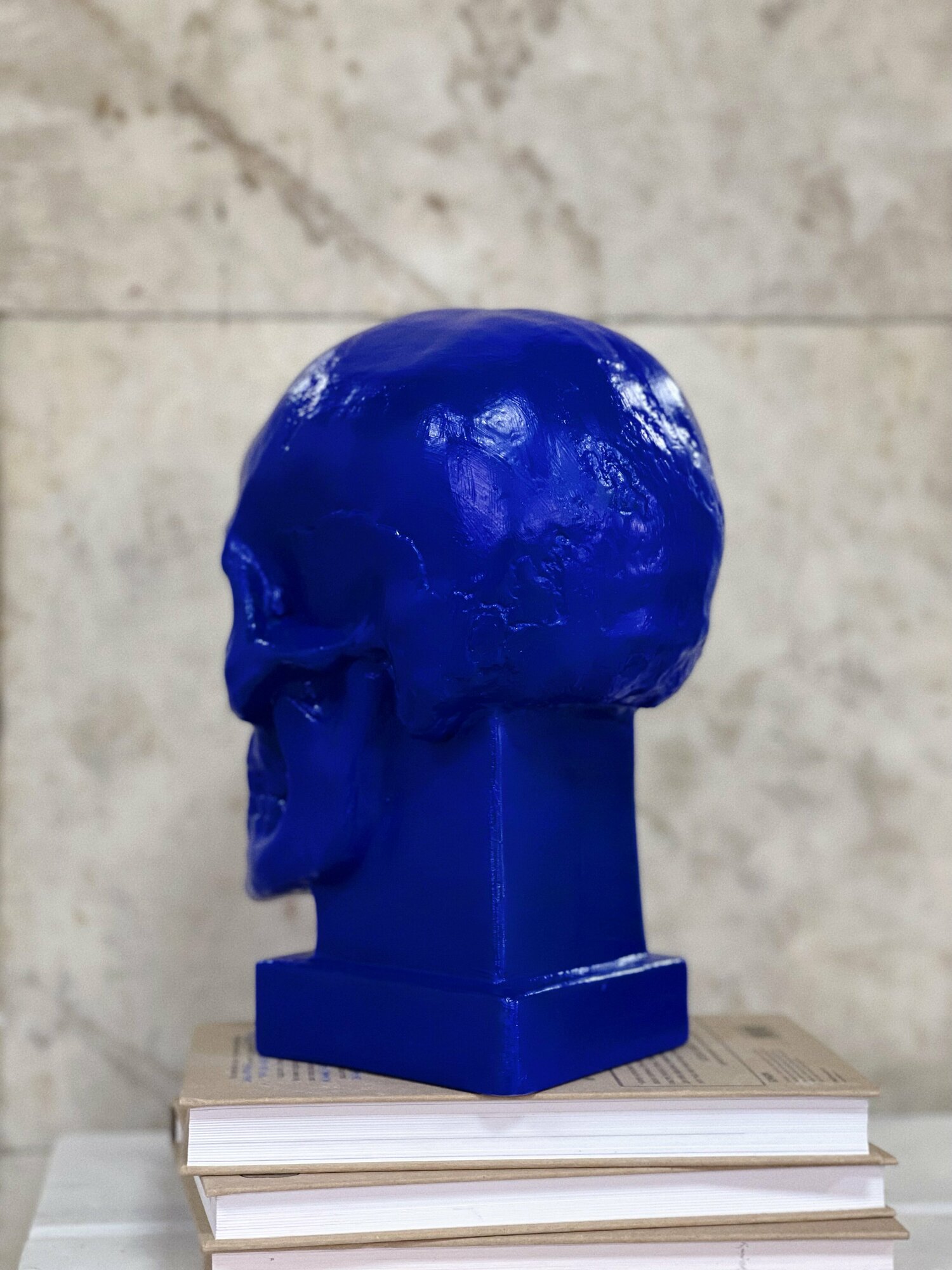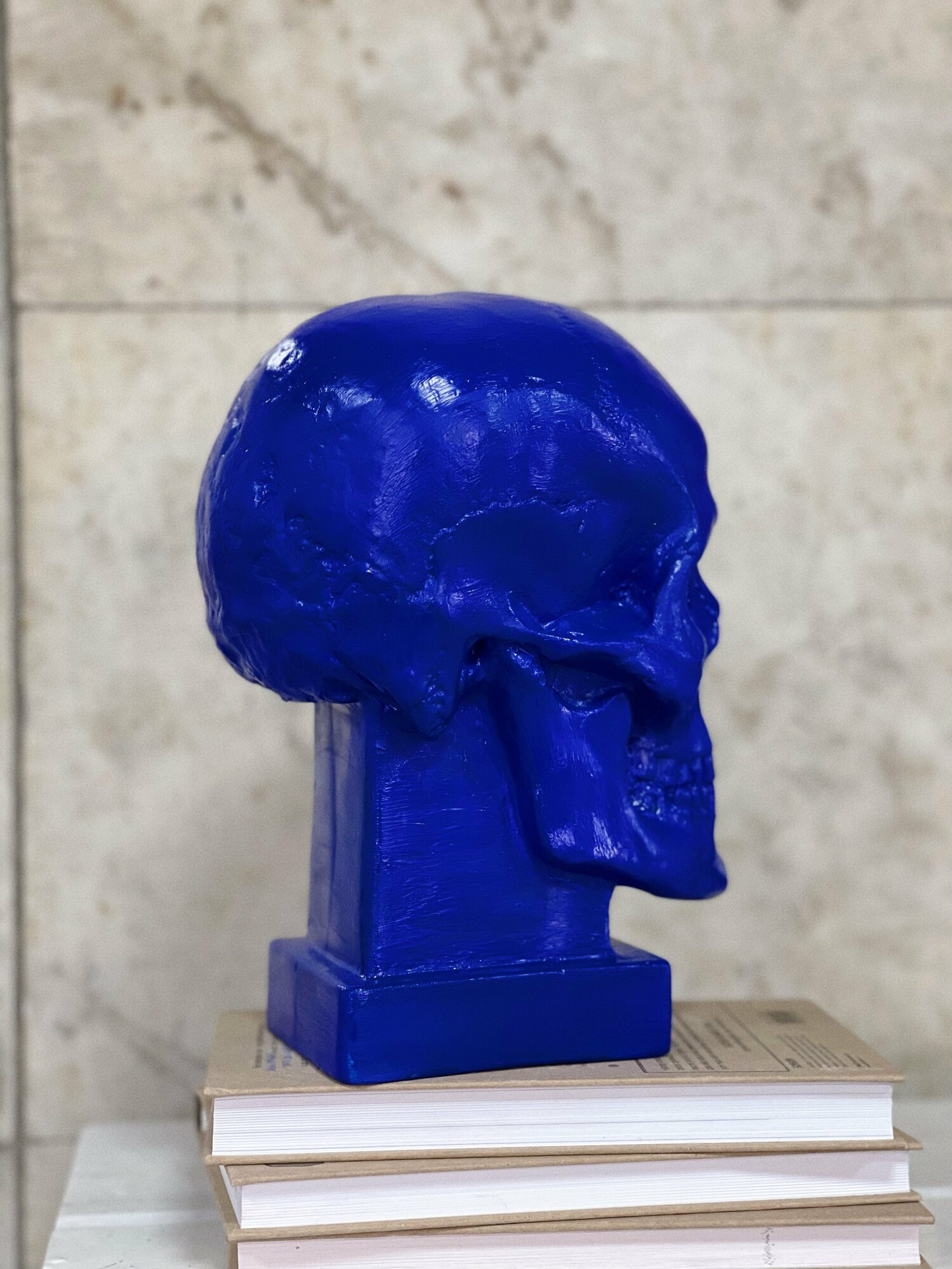 Купить Гипсовая статуэтка "Череп на подставке", синий цвет, размер 26 х 19 см