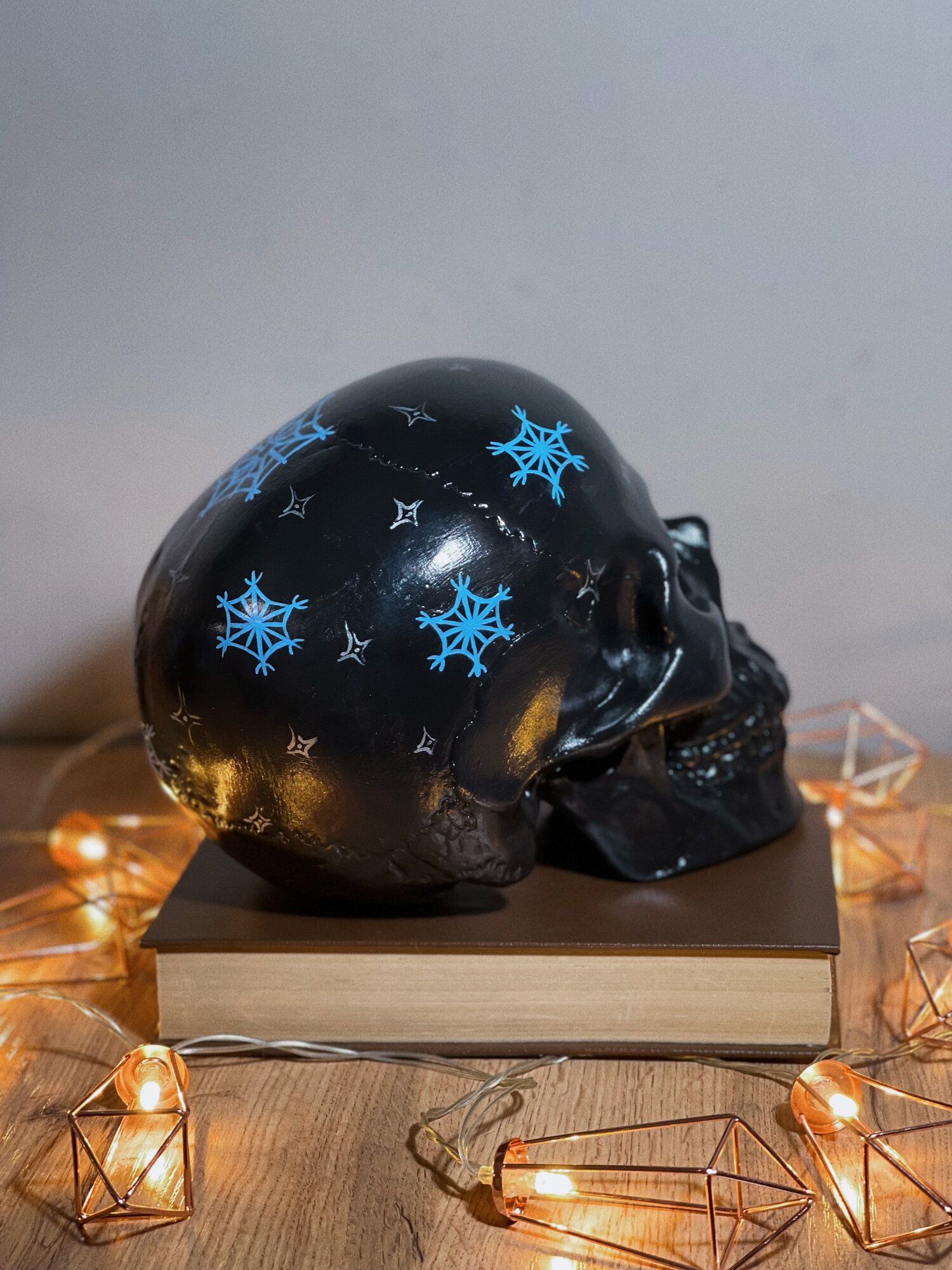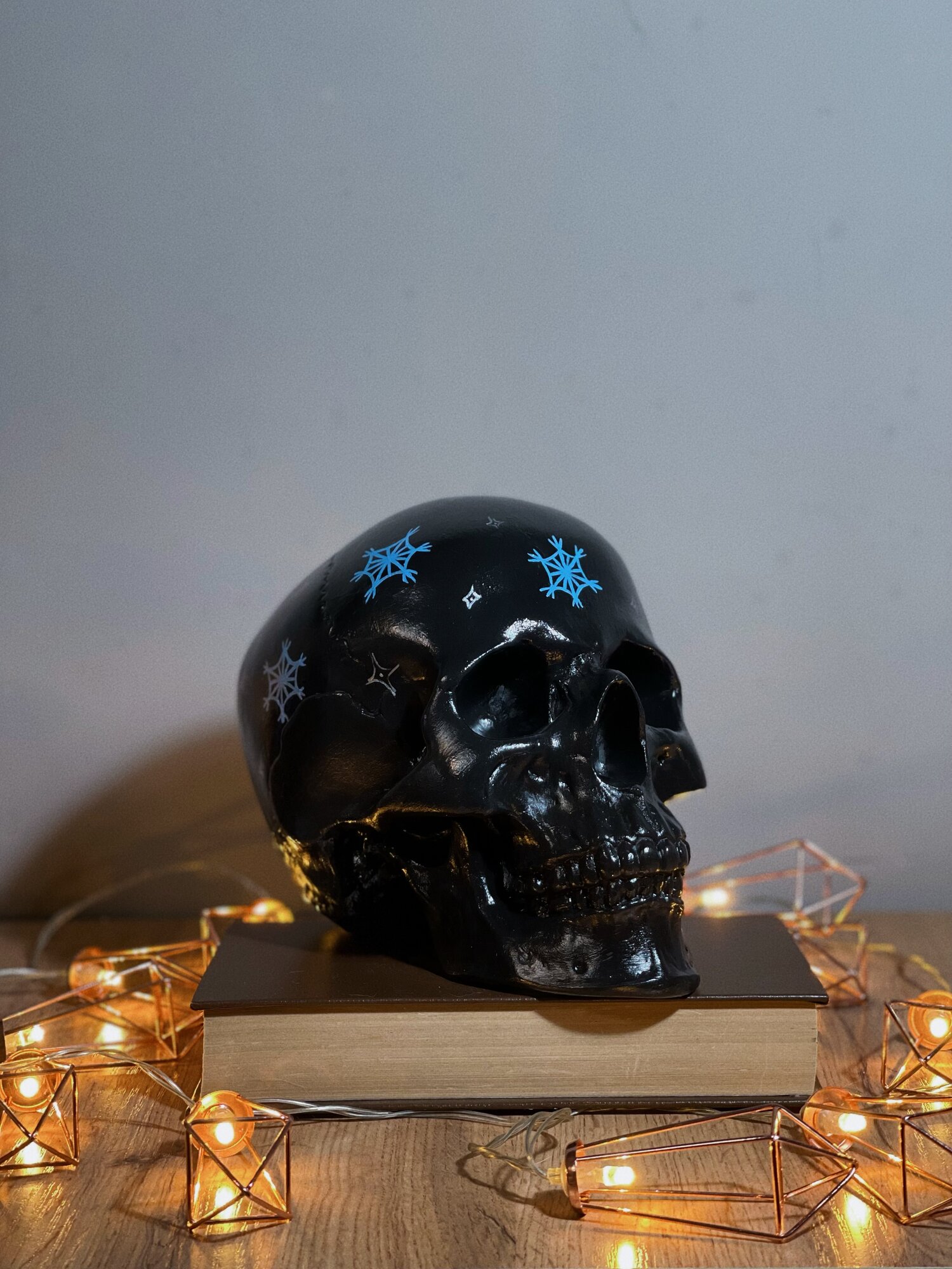 СохранитьСтатуэтка Череп анатомический из гипса, 15х15х20 см, с рисунком в виде снежинок интересное: